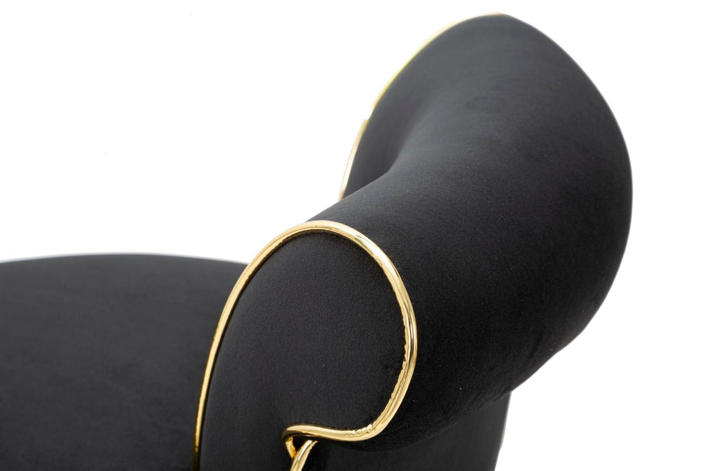• Schienale e poggiapiedi in metallo dorato aggiungono un tocco di lusso