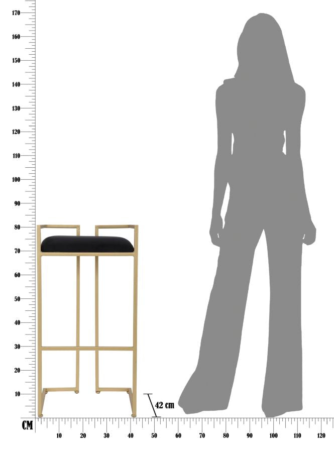 Obix Barhocker 42x42x81 cm aus Eisen und MDF und Schwamm und Gold und schwarzem Polyester
