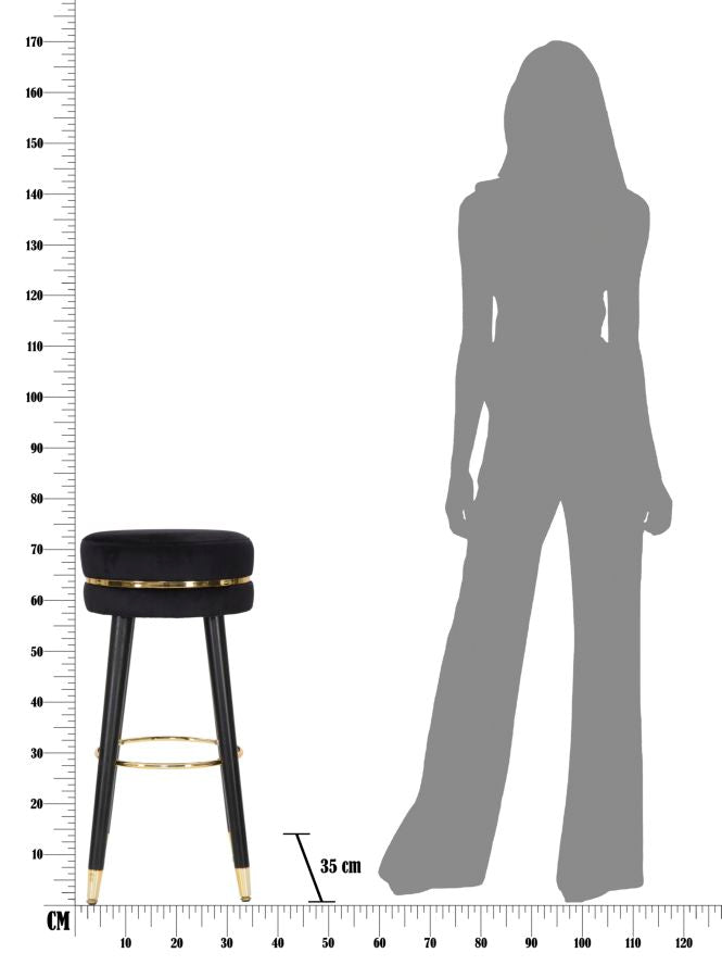 Barhocker Paris Ø35x74 cm aus Holz und schwarzem Samtstoff