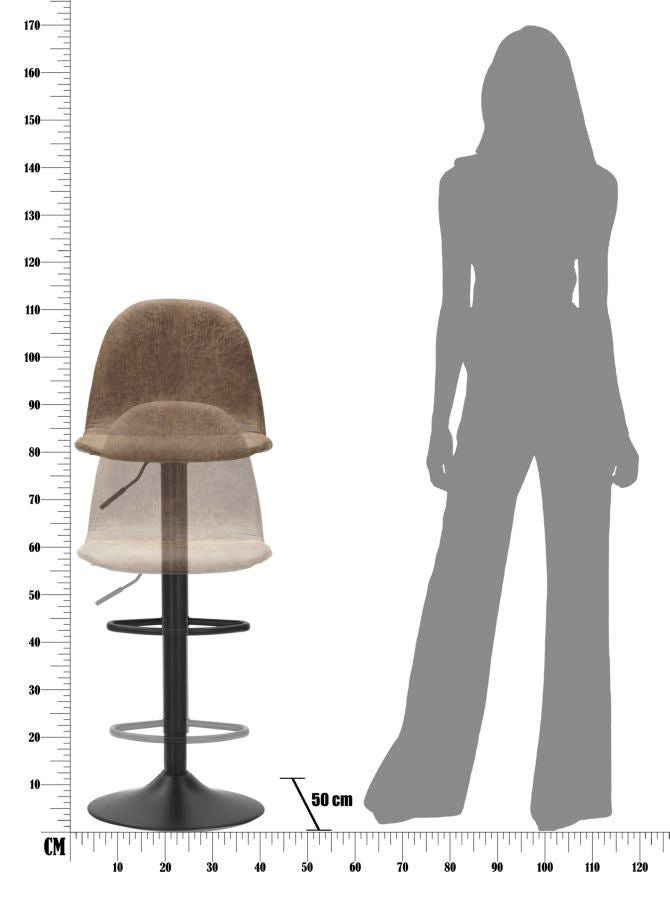 Berlin Hocker 41x50x90-112 Sitzhöhe 60x81 cm in Eisen und Schwamm und braunem und grauem PU