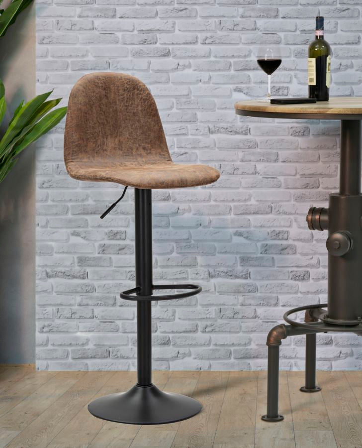 Hocker aus Kunstleder und schwarzem Metall, höhenverstellbar im Industriestil mit einem einfachen, aber entscheidenden Design, das für jede Art von Möbel geeignet ist.