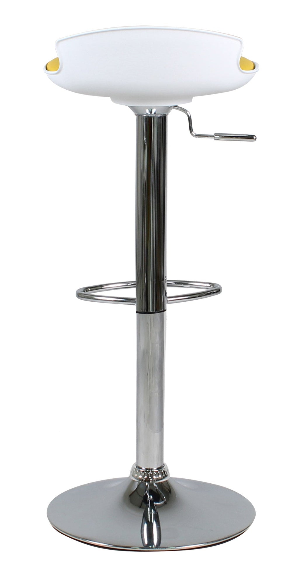 Technische Merkmale Weißer und gelber Hocker Vandi mit Gasfeder und Drehsitz aus Polypropylen und Kunstleder