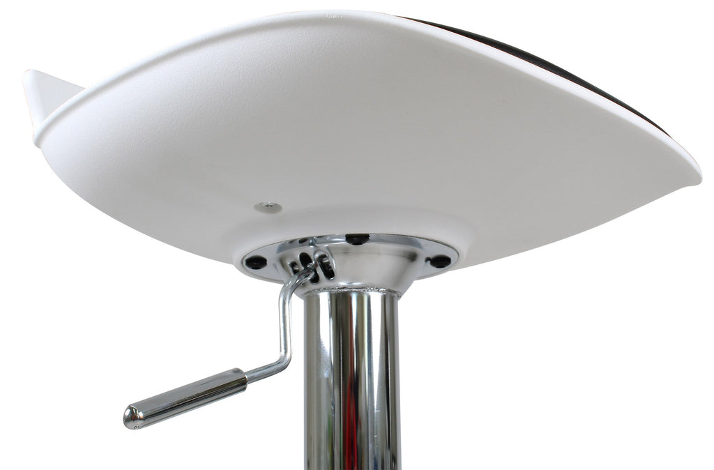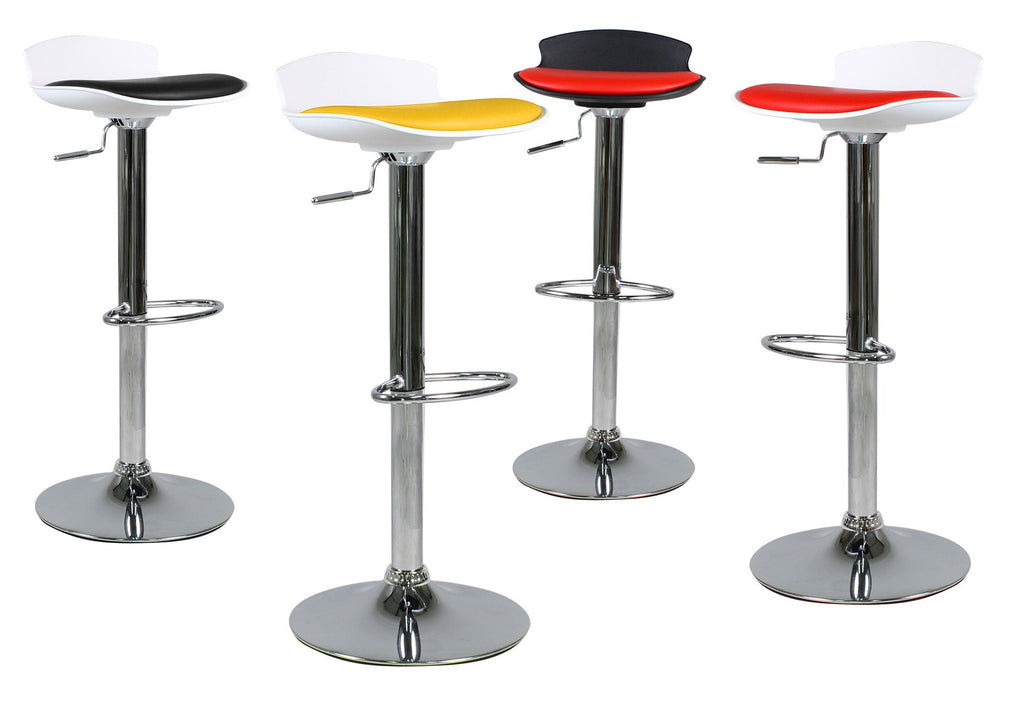 Bequemer und moderner moderner Hocker mit Kunstledersitz und Polypropylen-Rückenlehne, höhenverstellbarer Stahlfuß mit sehr bequemer Fußstütze.