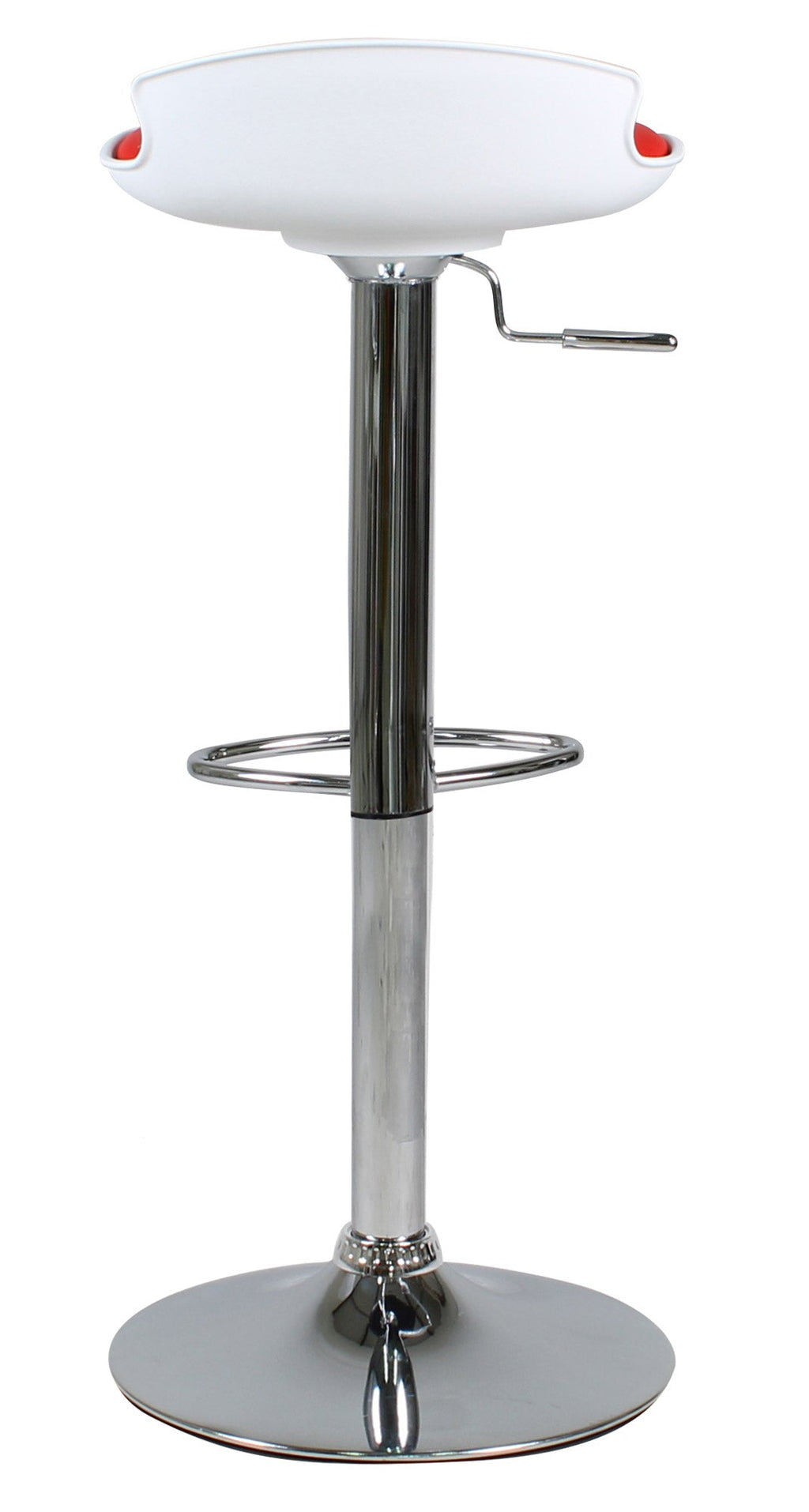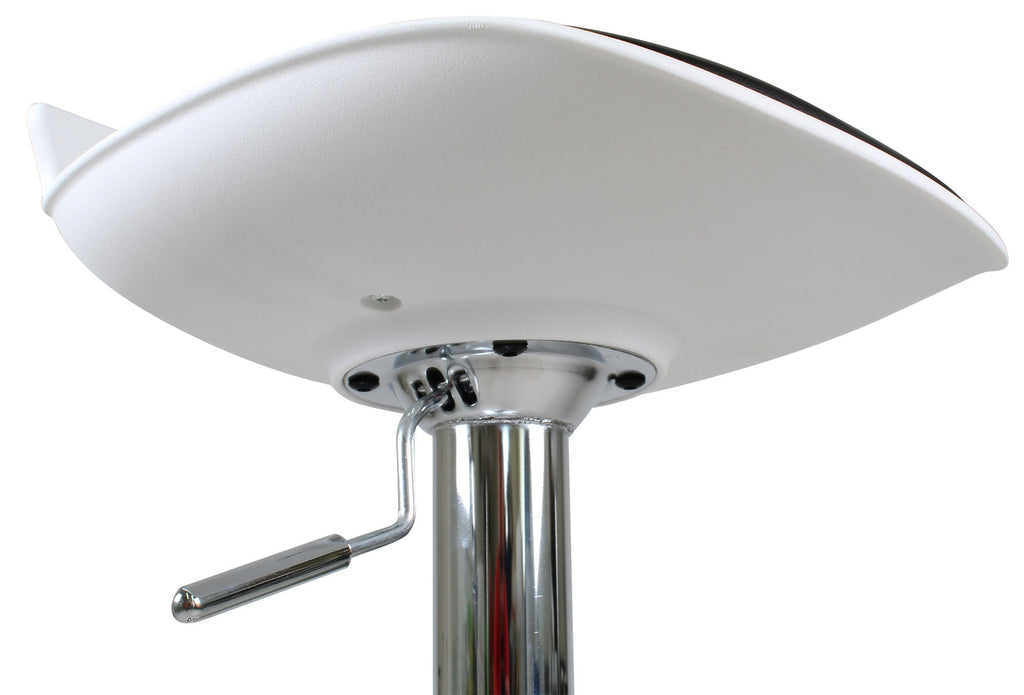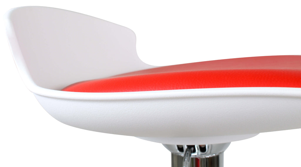 Technische Eigenschaften Weißer und roter Hocker Vandi mit Gasfeder und Drehsitz aus Polypropylen und Kunstleder