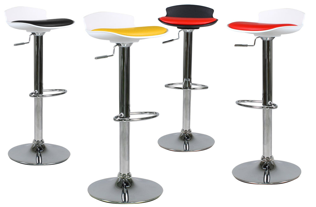 Bequemer und moderner moderner Hocker mit Kunstledersitz und Polypropylen-Rückenlehne, höhenverstellbarer Stahlfuß mit sehr bequemer Fußstütze.
