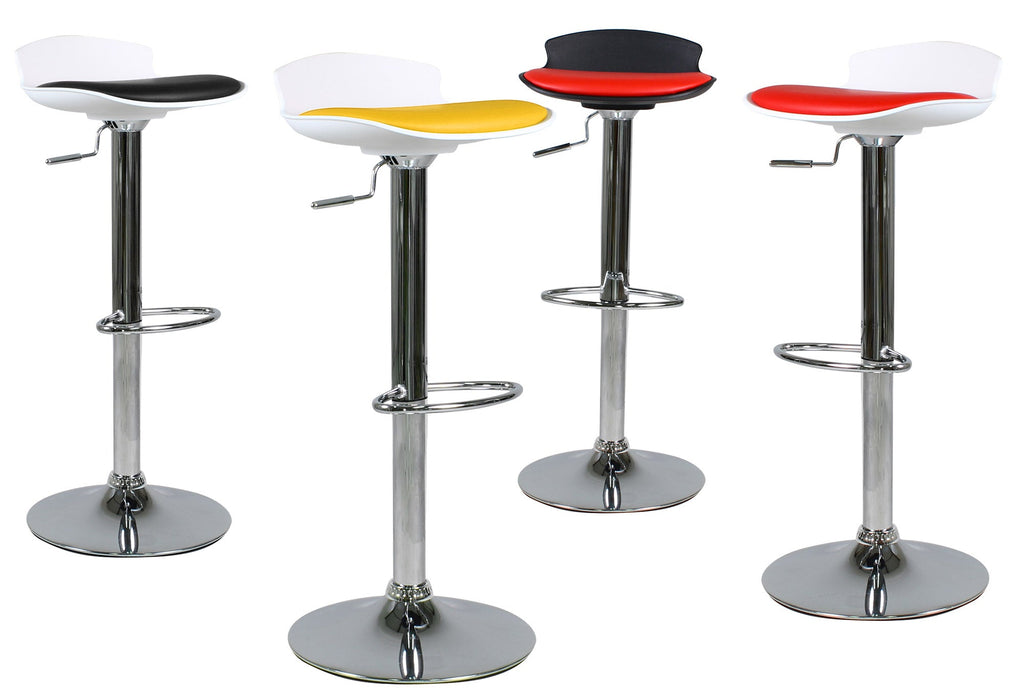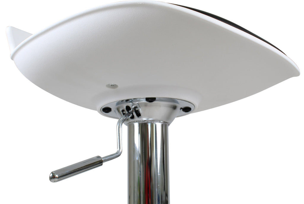 Bequemer und moderner moderner Hocker mit Kunstledersitz und Polypropylen-Rückenlehne, höhenverstellbarer Stahlfuß mit sehr bequemer Fußstütze.