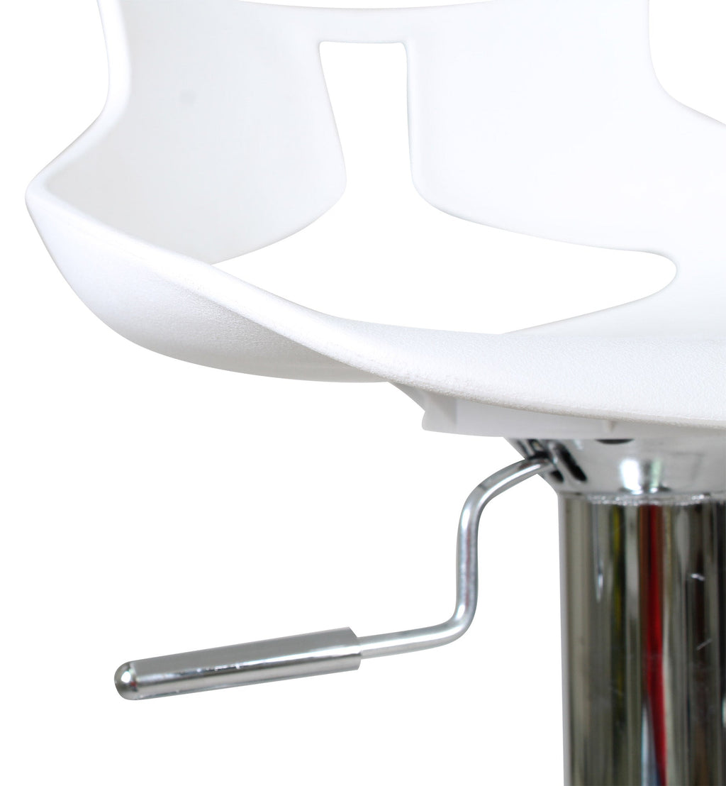 Technische Merkmale Hocker mit Gasdruckfeder und drehbarem Sitz aus weißem Vandi-Polypropylen