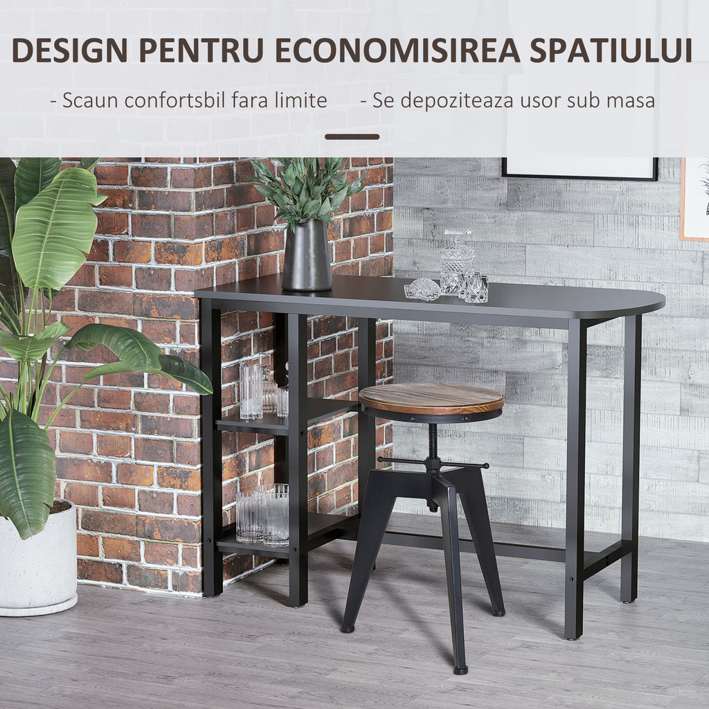 Höhenverstellbarer hoher Barhocker aus Metall und schwarzem Holz