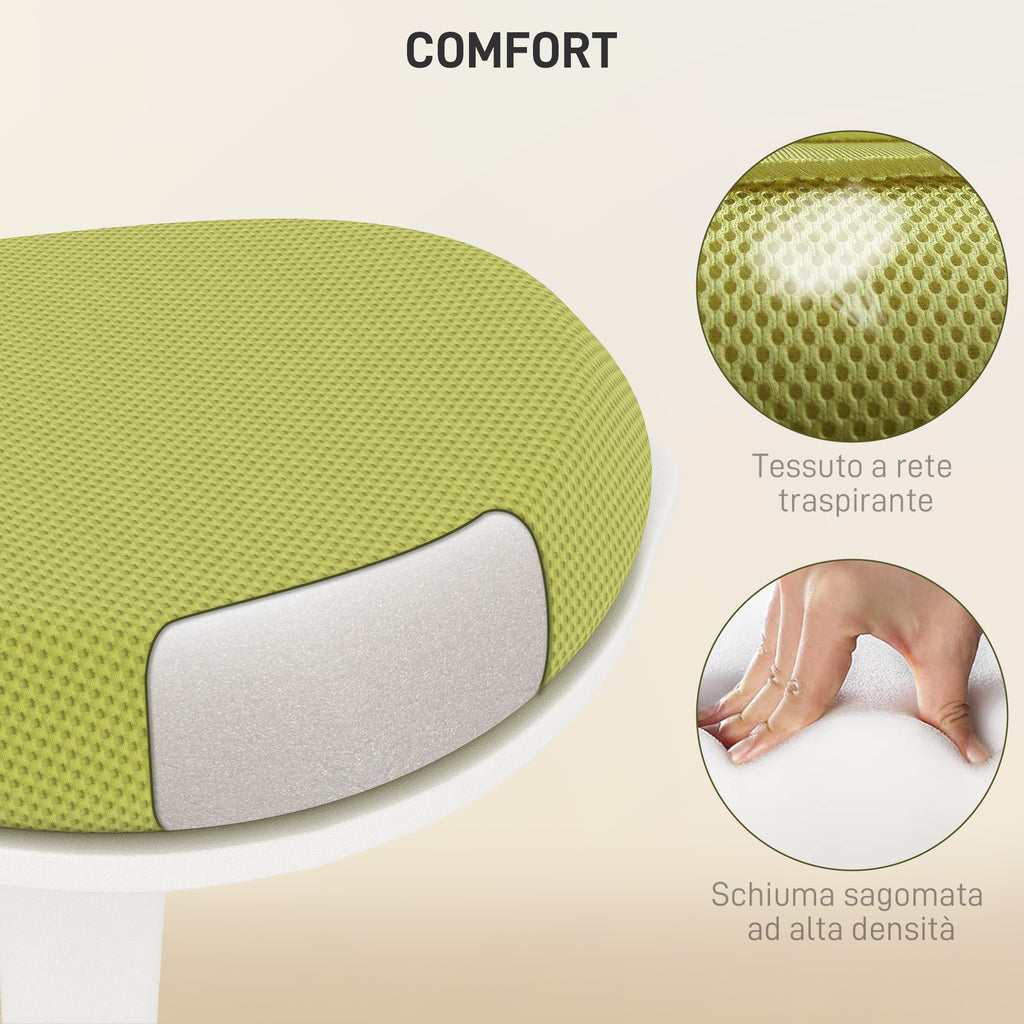 Sgabello Ergonomico e Imbottito ad Altezza Regolabile 42,5x35,5x56,5-71,5 cm con Inclinazione a 5° Verde