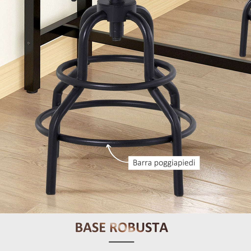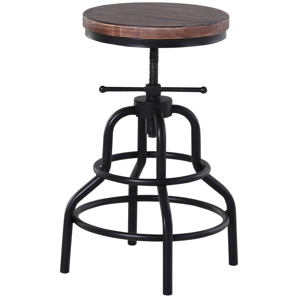 Drehbarer, verstellbarer Hocker aus Metall und schwarzem und braunem Kiefernholz