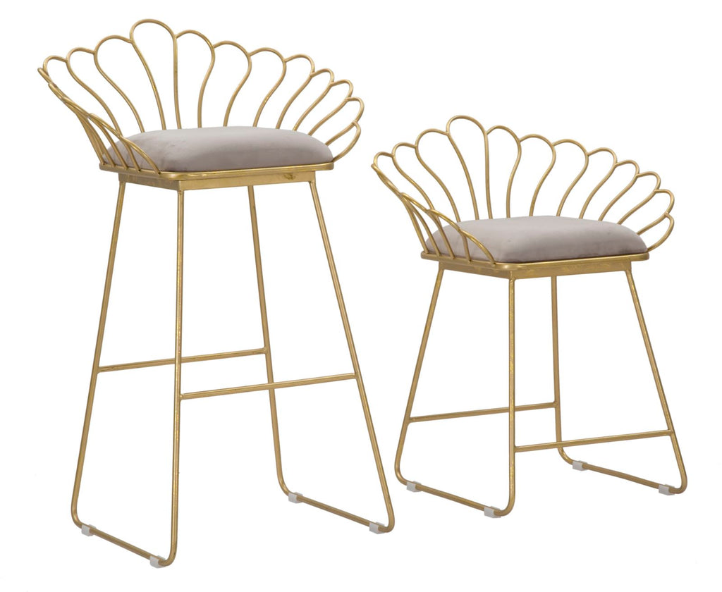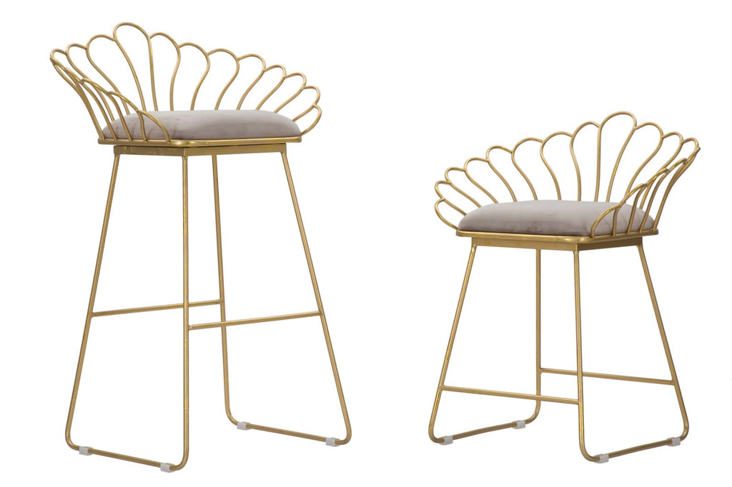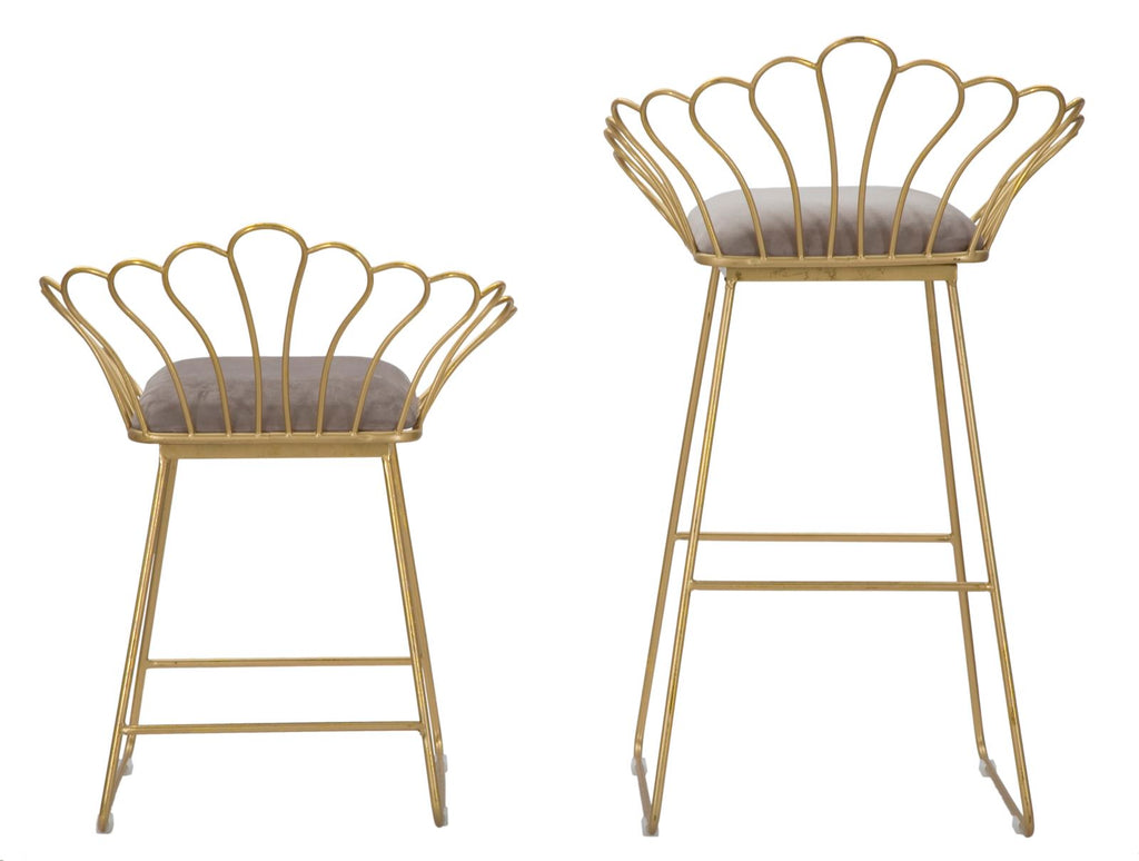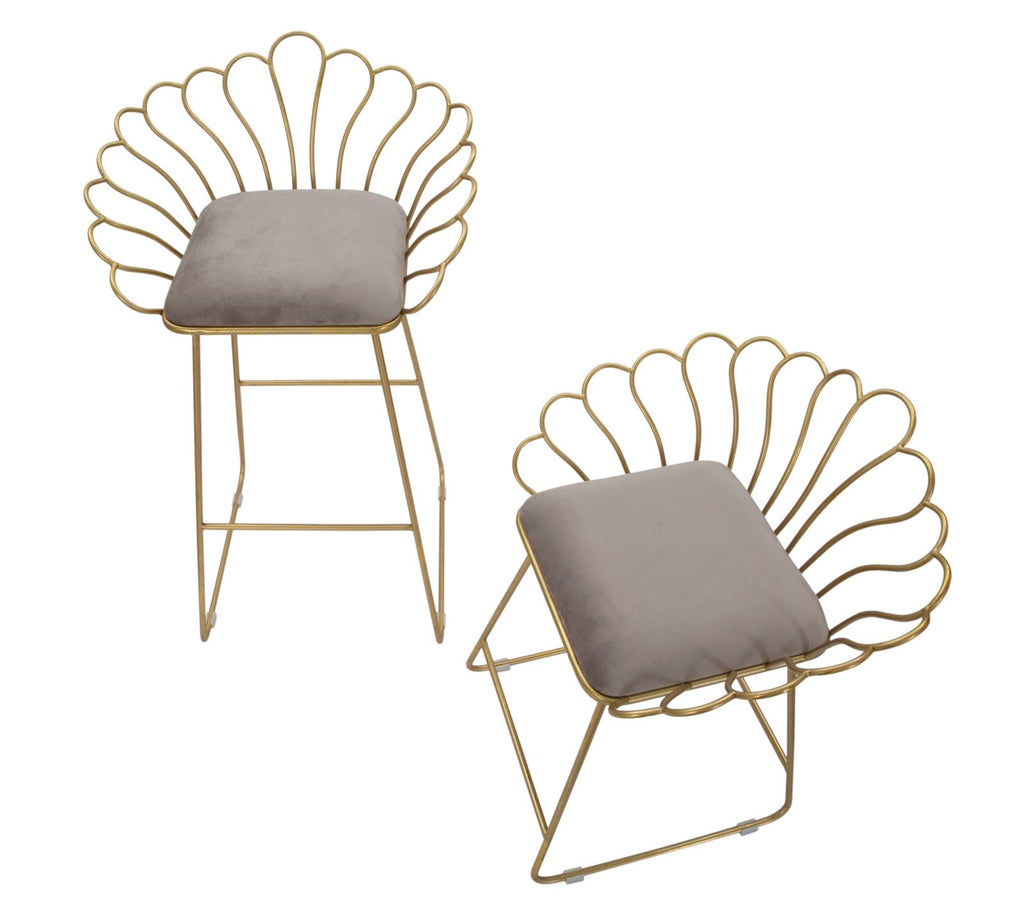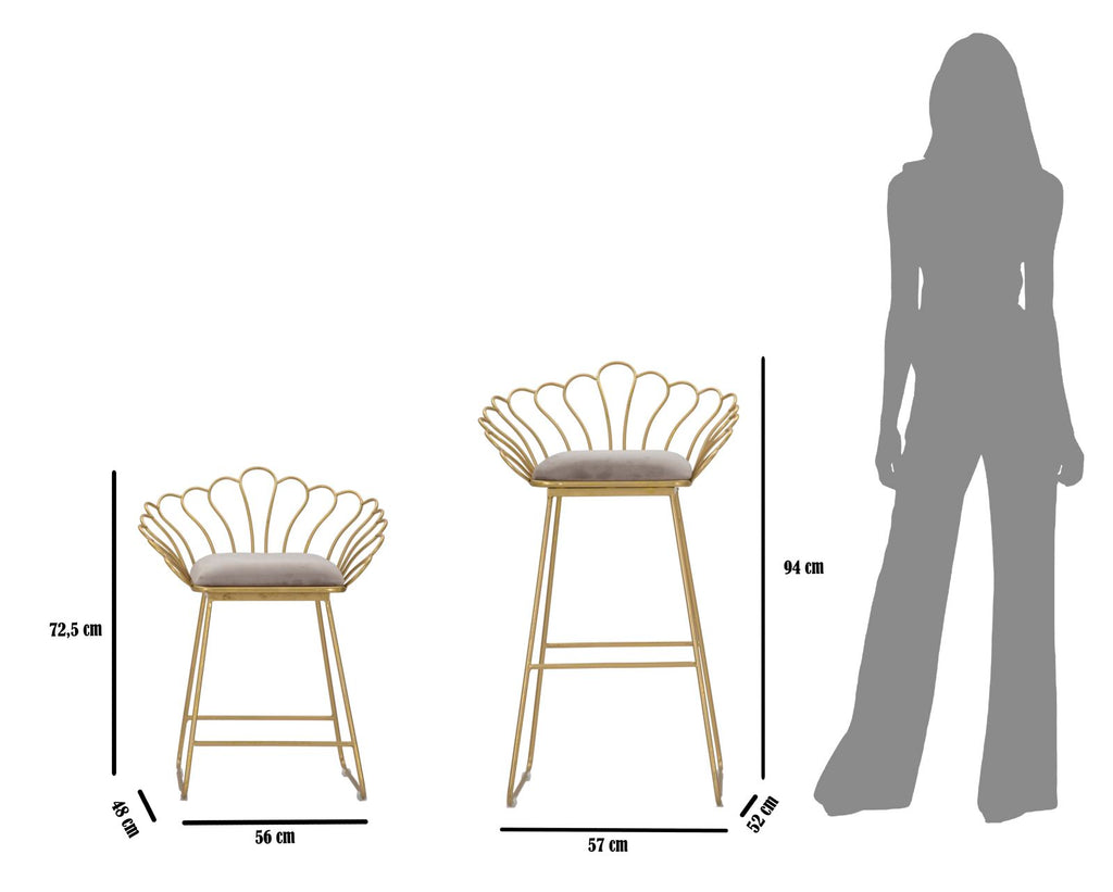 Glam Flower Grey Hocker 57 x 52 x 94-56 x 48 x 72,50 cm in Eisen und Schwamm und goldenem und grauem Stoff