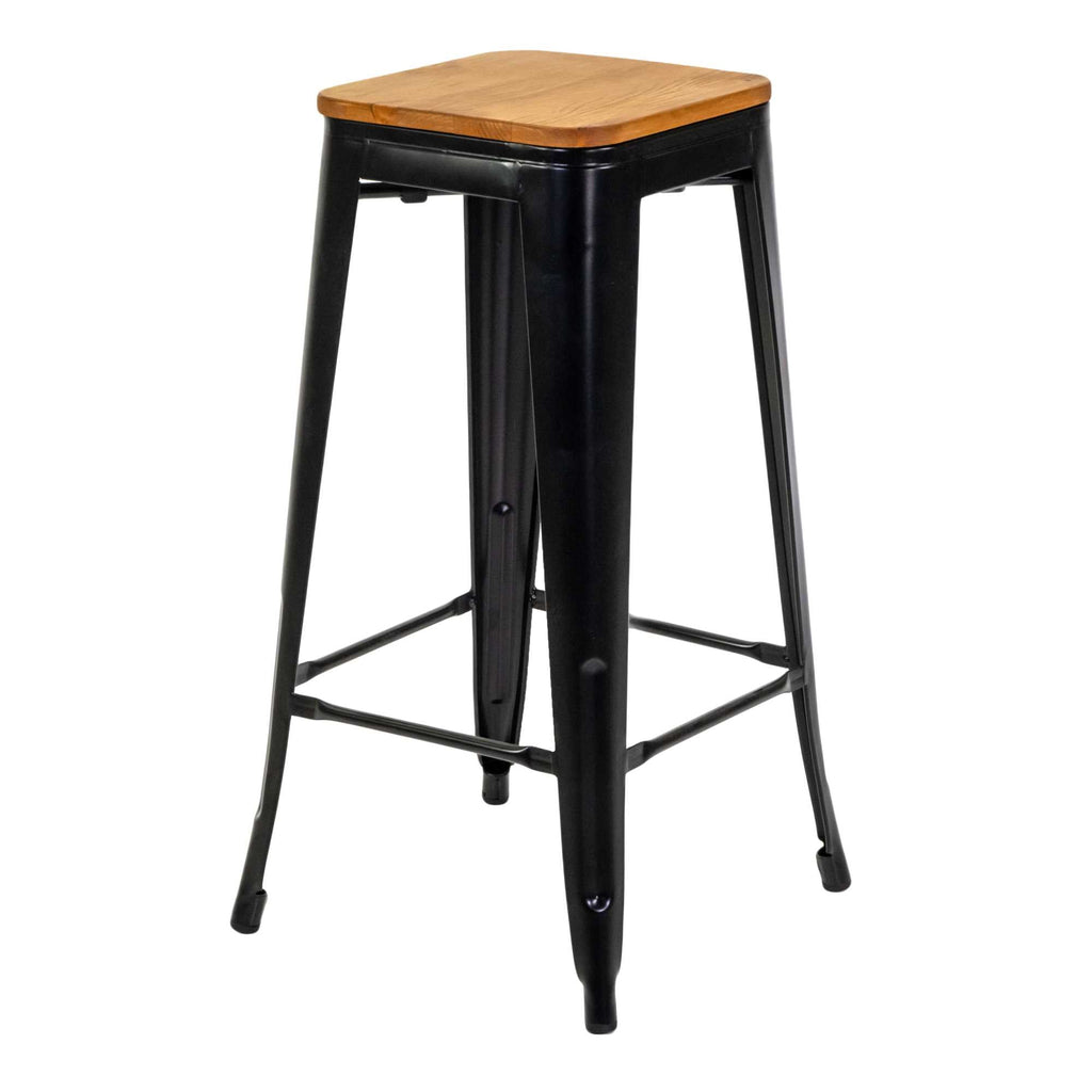 Sgabello New Bristol 42x42xh76 cm in Ferro Nero con seduta in Legno