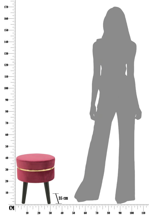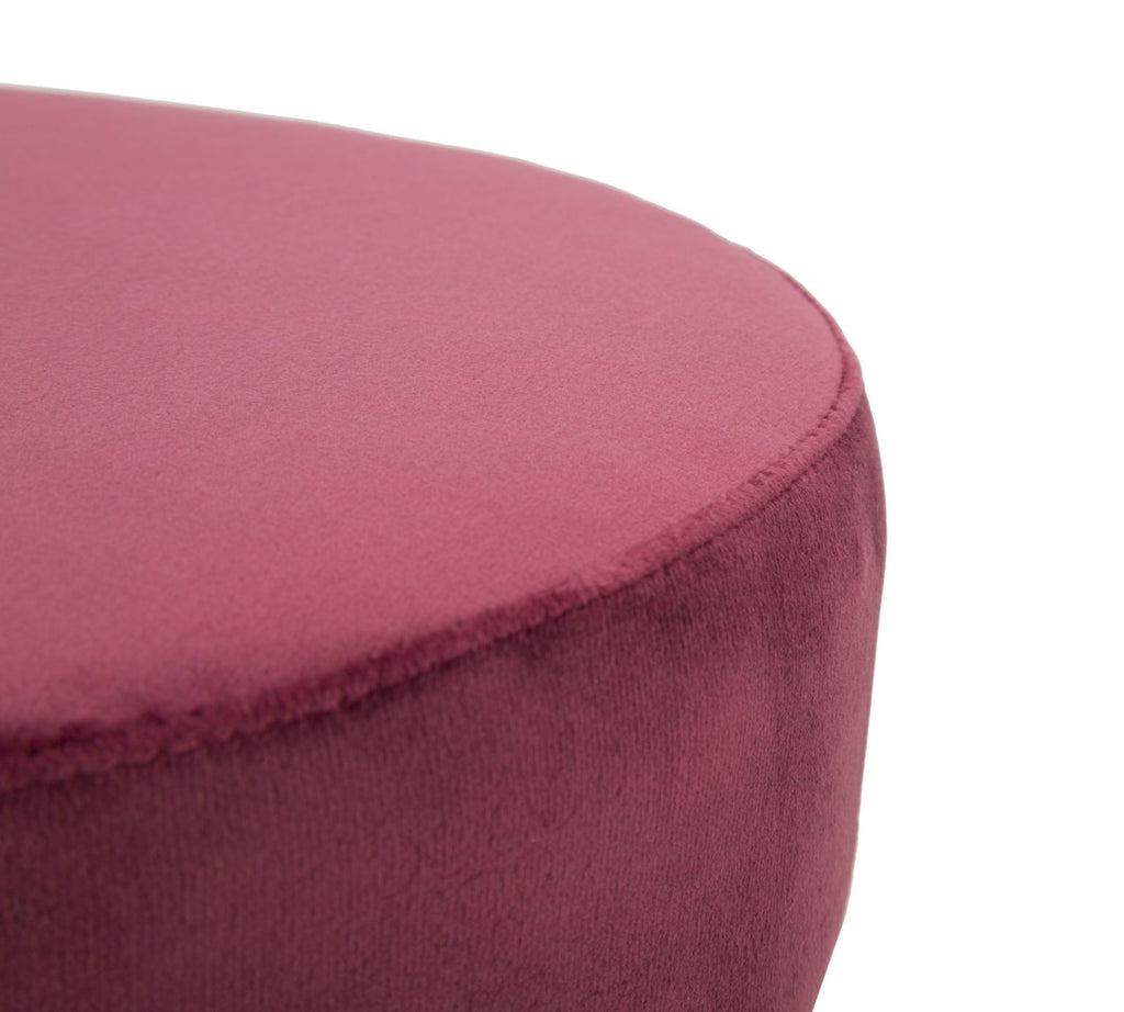 Bordeaux Paris Hocker Ø35x40,5 cm Schwammholz und Bordeaux und Gold und Schwarzer Synthetiksamt