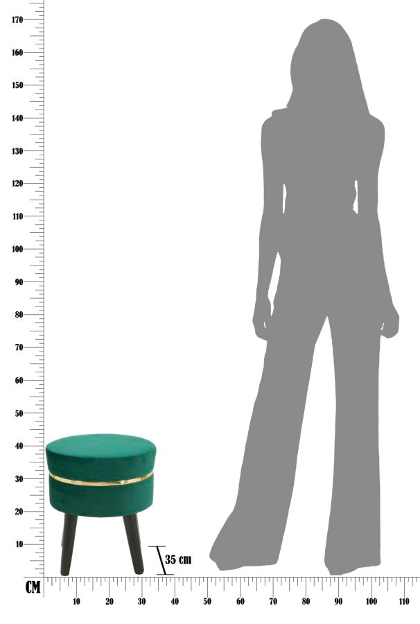 Hocker Paris Green Ø35x40,5 cm Schwammholz und Synthetiksamt in Grün und Gold und Schwarz