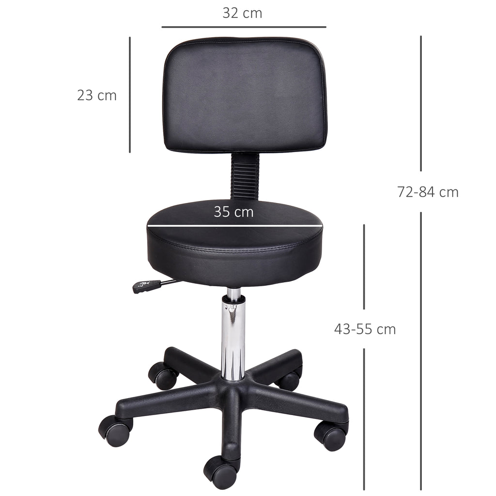 Kosmetikhocker mit Rückenlehne Drehstuhl aus Kunstleder höhenverstellbar schwarz