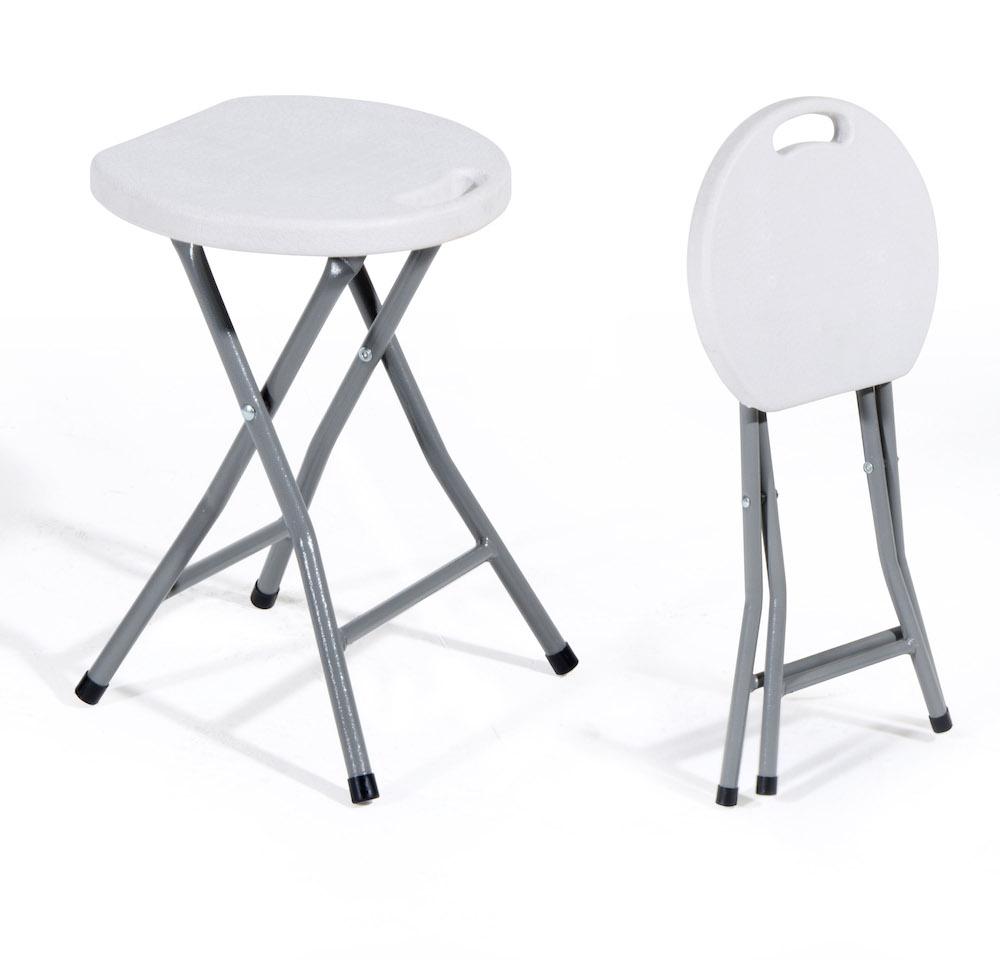 Klapphocker mit Struktur aus lackiertem Stahl Ø 22 mm und Sitzfläche aus HDPE-Kunststoff.