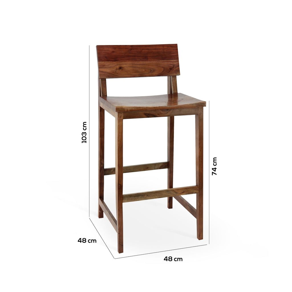 Stile country e vintage per lo sgabello Santiago con schienale realizzato interamente in rovere. Un design senza tempo capace di adattarsi ad ambienti classici e un po' vintage. Ideale da abbinare alla tua penisola o come arredamento di un pub e attività ricettiva