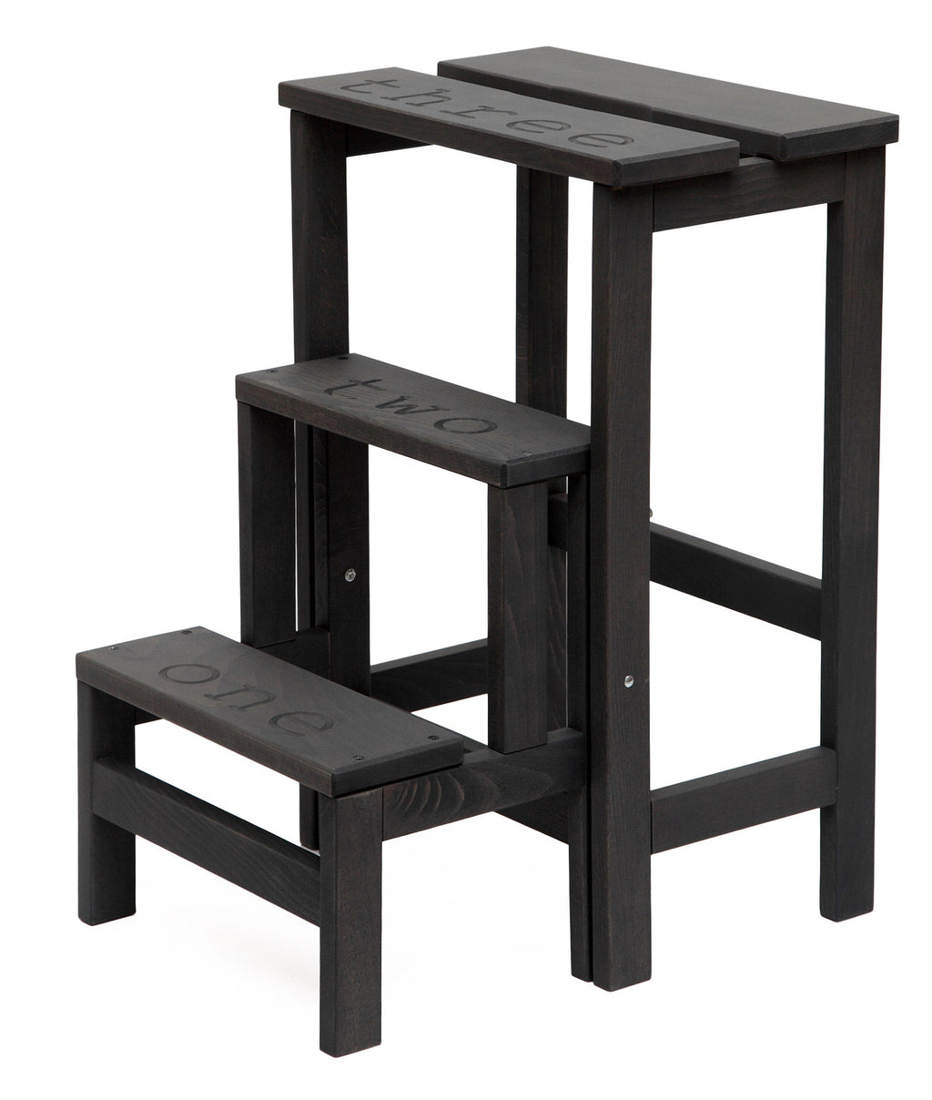 Leiterhocker 60x40x46 cm in schwarzem Holz