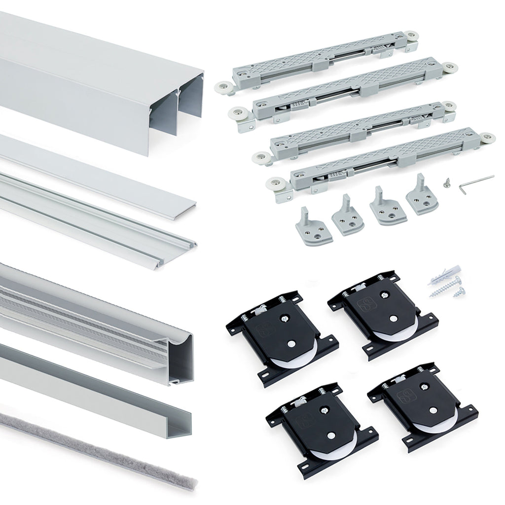- 1 Satz Laufwagen und Laufschienen für zwei Türen