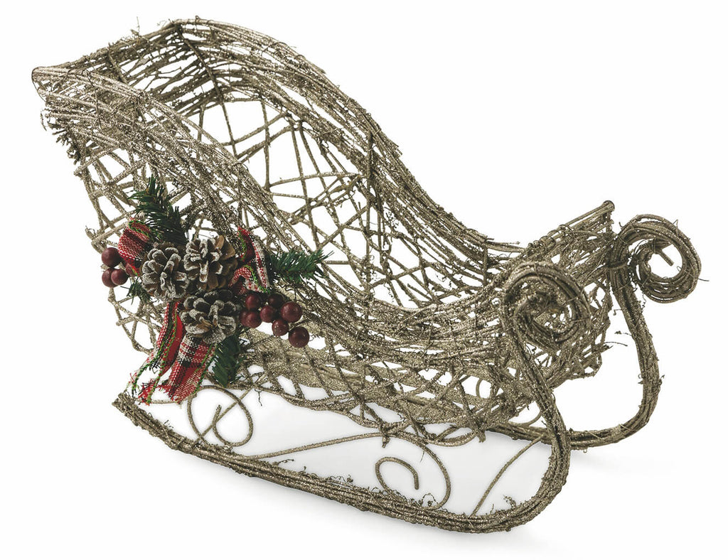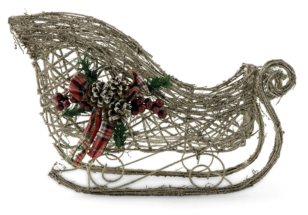 Schlitten des Weihnachtsmanns 47x18x30 cm in Gold Soriani Rattan