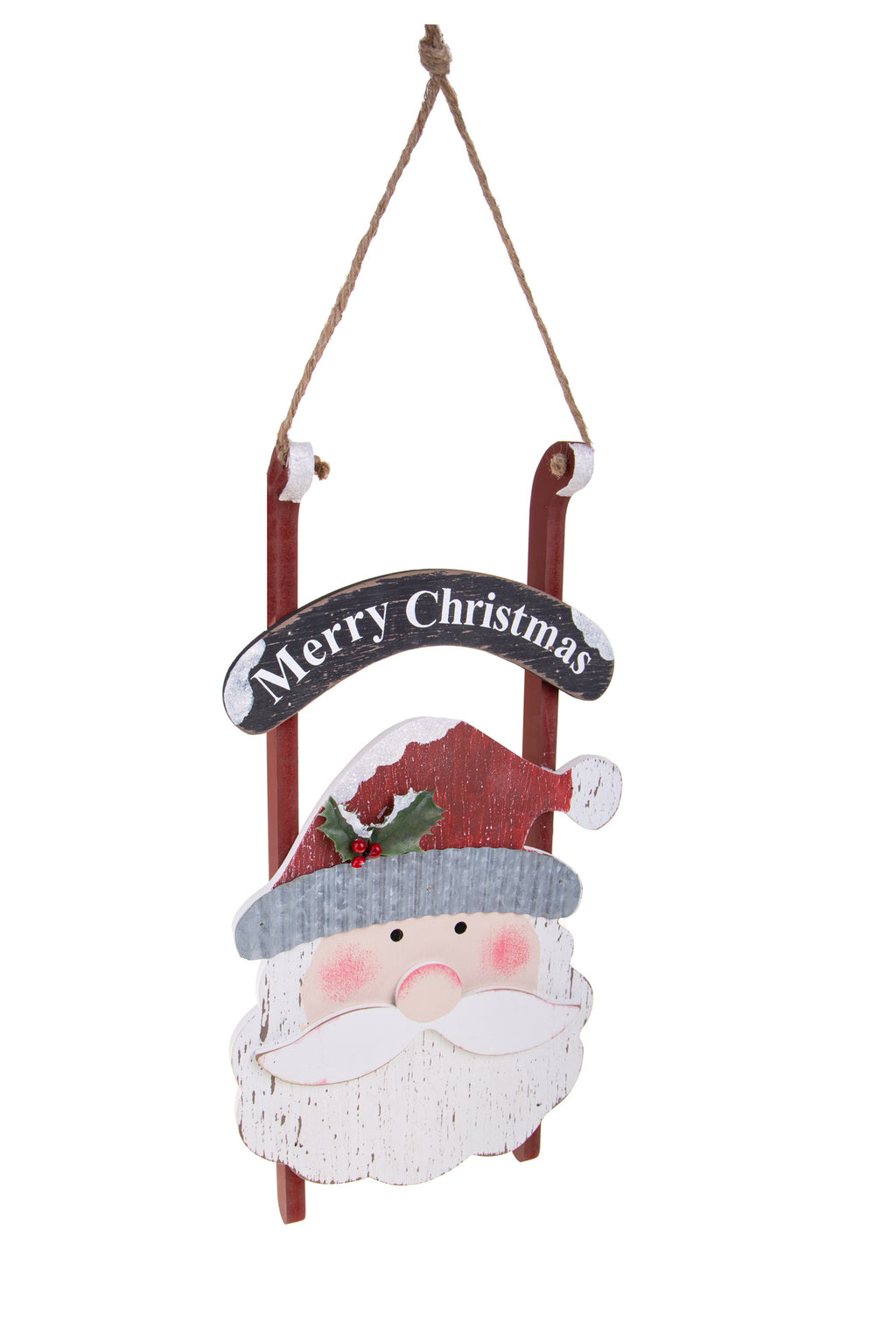 Schlitten mit Weihnachtsmanngesicht H45 cm aus Holz