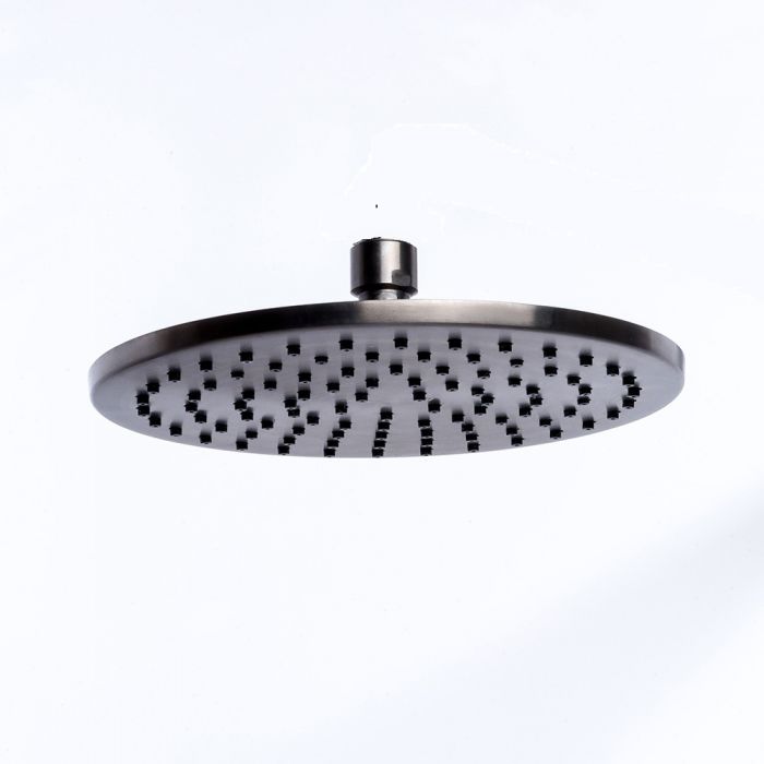 Soffione doccia tondo diametro 20 cm in acciaio inox 316L nero. Nati per essere contemporanei, le superfici lisce e pulite fanno dei rubinetti Tevere un accessorio di design per spazi moderni