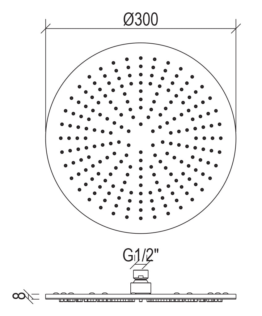 Soffione Doccia Tondo Diametro 30 cm Nero Tevere