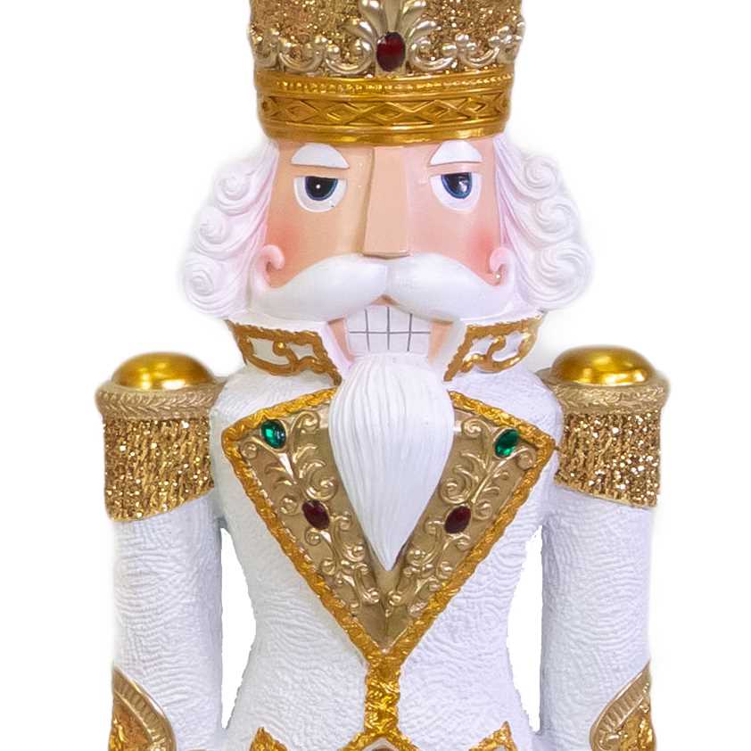 Soldatino Schiaccianoci in resina bianco e oro cm 27,5x25xh91,5
