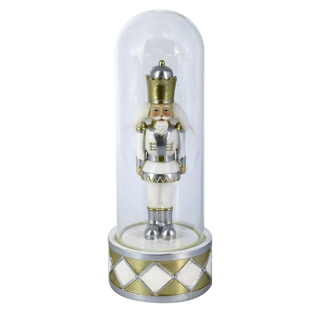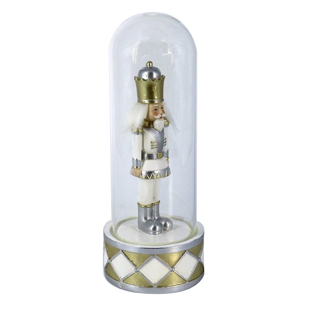 Nussknackersoldat aus Harz, weiße Glasglocke 10x10xh26 cm