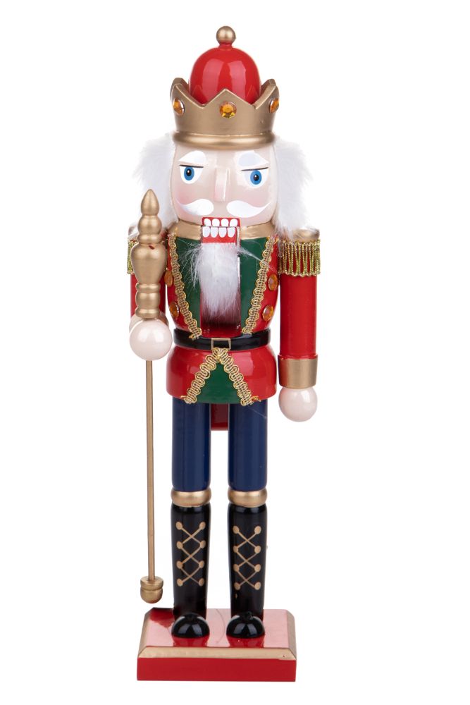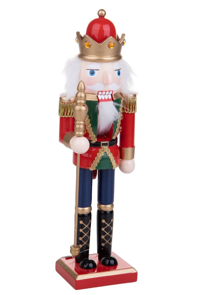 Soldato Schiaccianoci Natalizio con Bastone H30 cm in Legno
