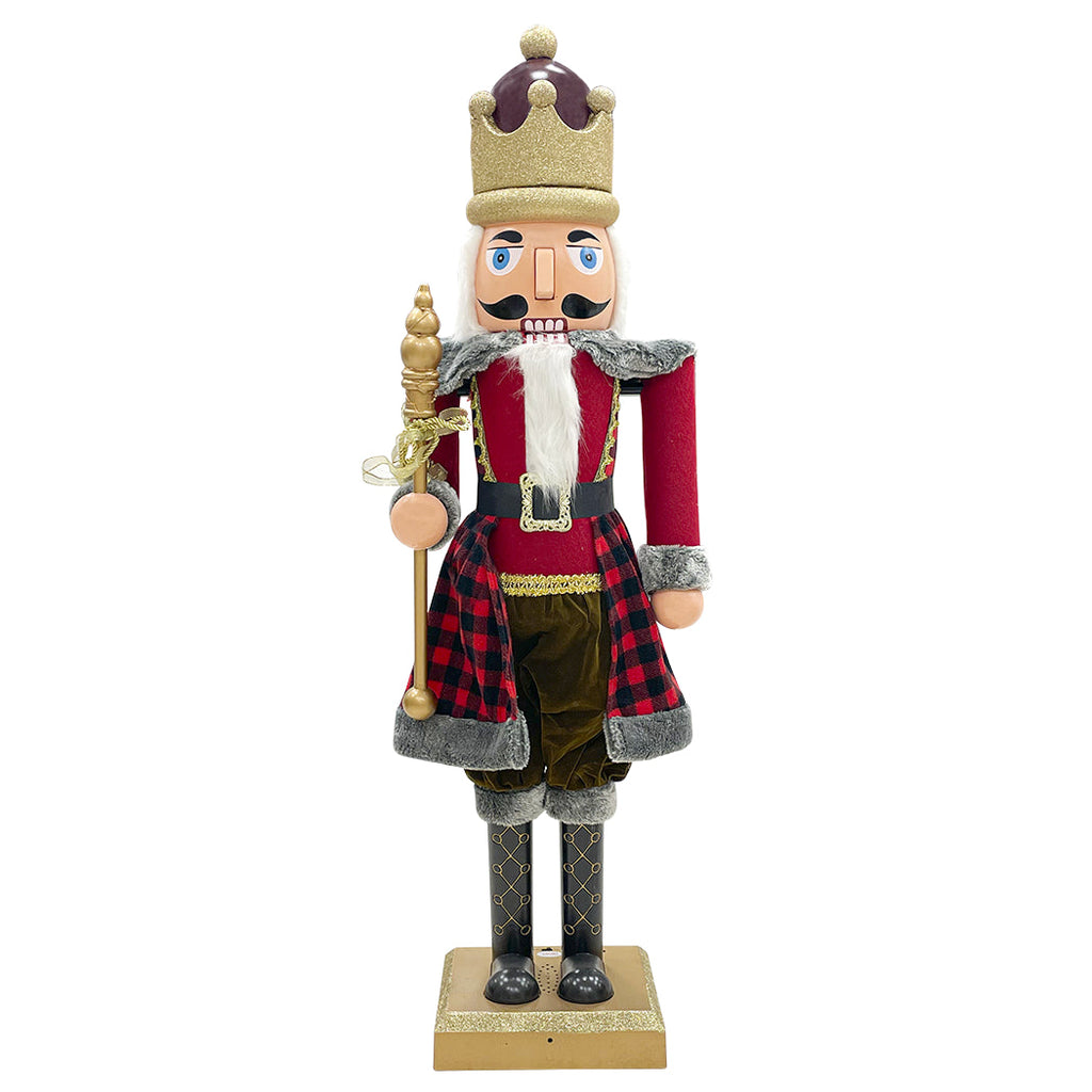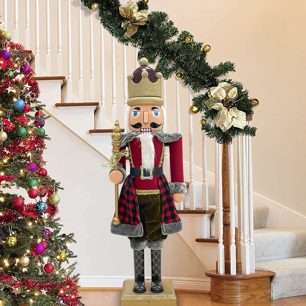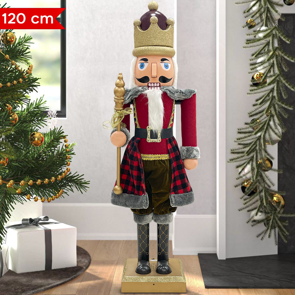 Weihnachtlicher Nussknacker-Soldat H120 cm mit Lichtern, Geräuschen und Bewegung in Schottenrot