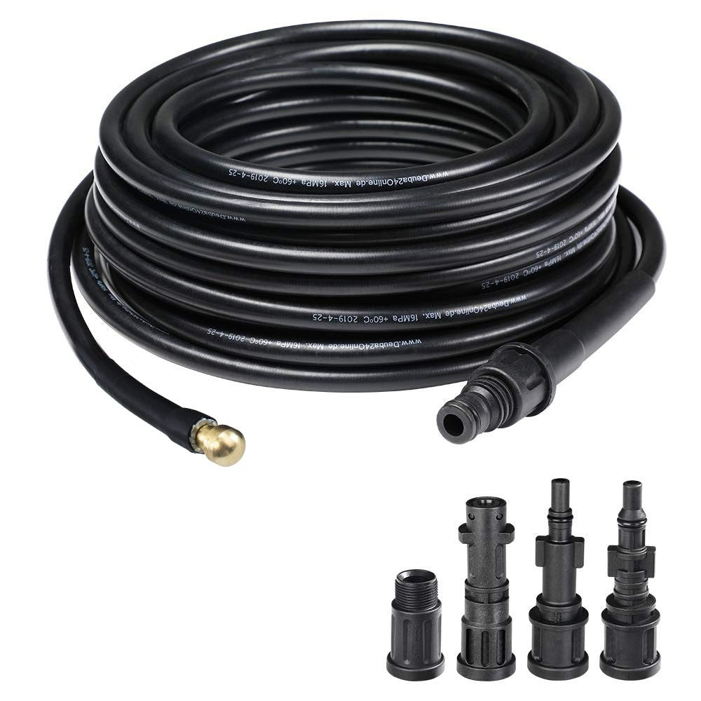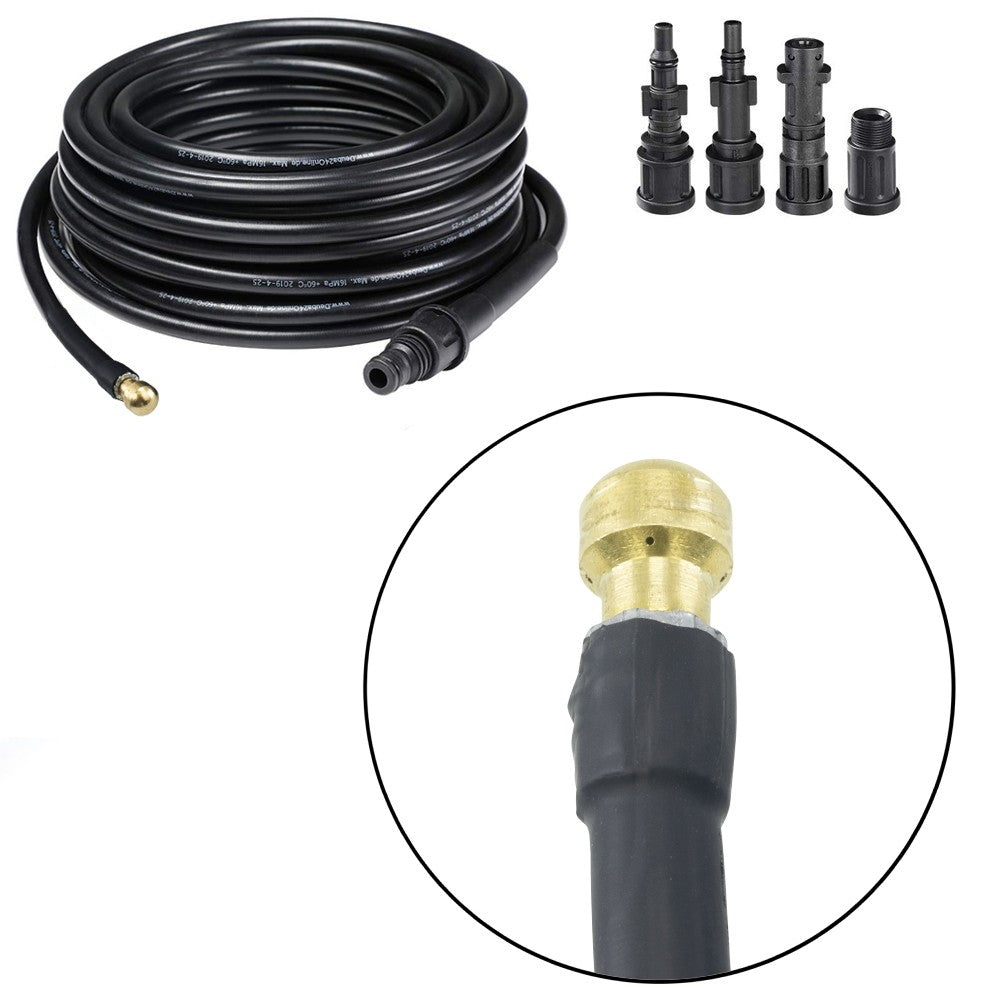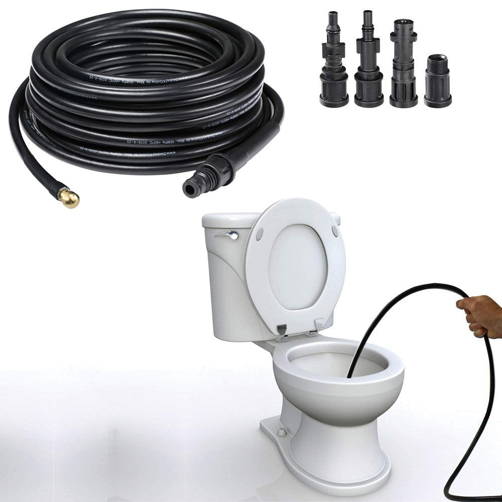 Diese Sonde wurde entwickelt, um verstopfte Abwasserkanäle, Dachrinnen und Toiletten ohne den Einsatz von Chemikalien oder Reinigungsmitteln zu reinigen. Dank der 4 mitgelieferten Düsen passt er sich perfekt an die meisten auf dem Markt erhältlichen Hochdruckreiniger an und ist ideal für die Reinigung von Fußböden oder Gartenmöbeln im Innen- und Außenbereich. Der Schlauch kann mit einer maximalen Wassertemperatur von 60° verwendet werden und hält einem maximalen Druck von 160 BAR stand