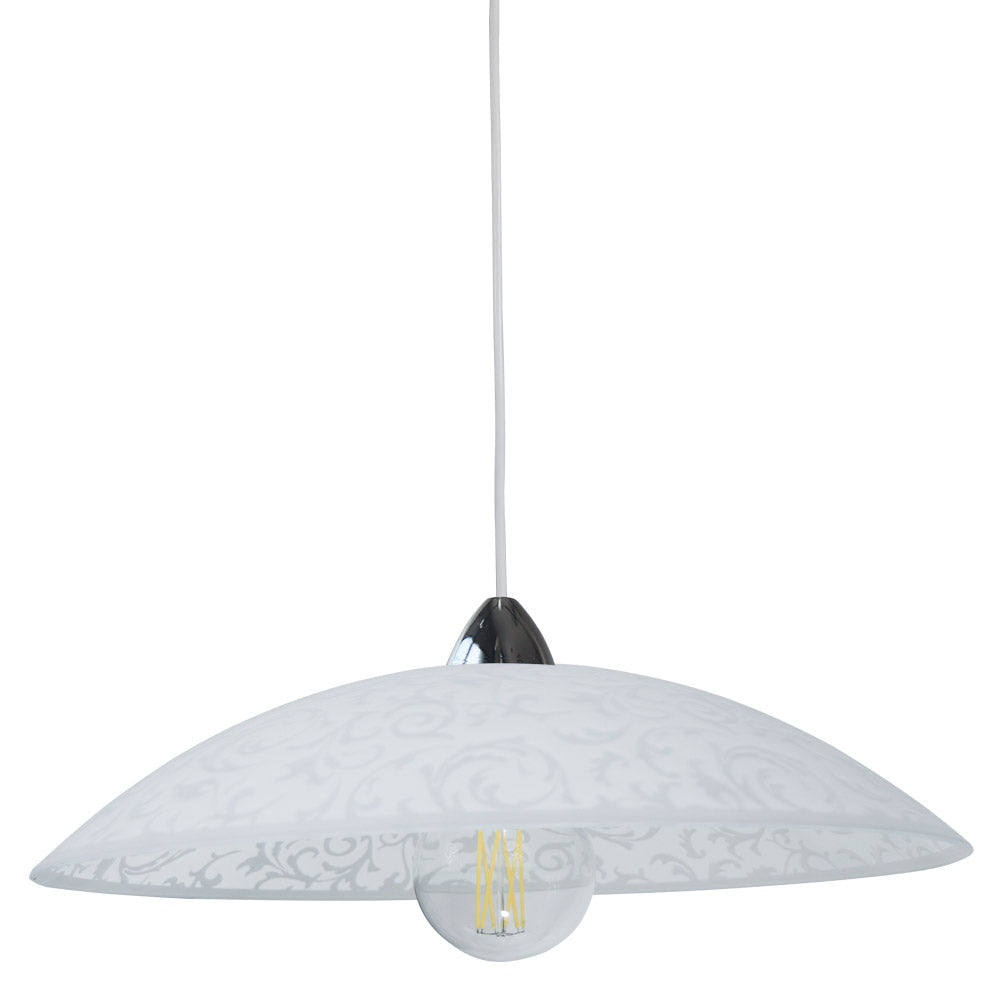 Aufhängung D50 1xE27 Chrom-Weiß Rahmen Glasplatte Weiß Damaskus E-Energy Michela