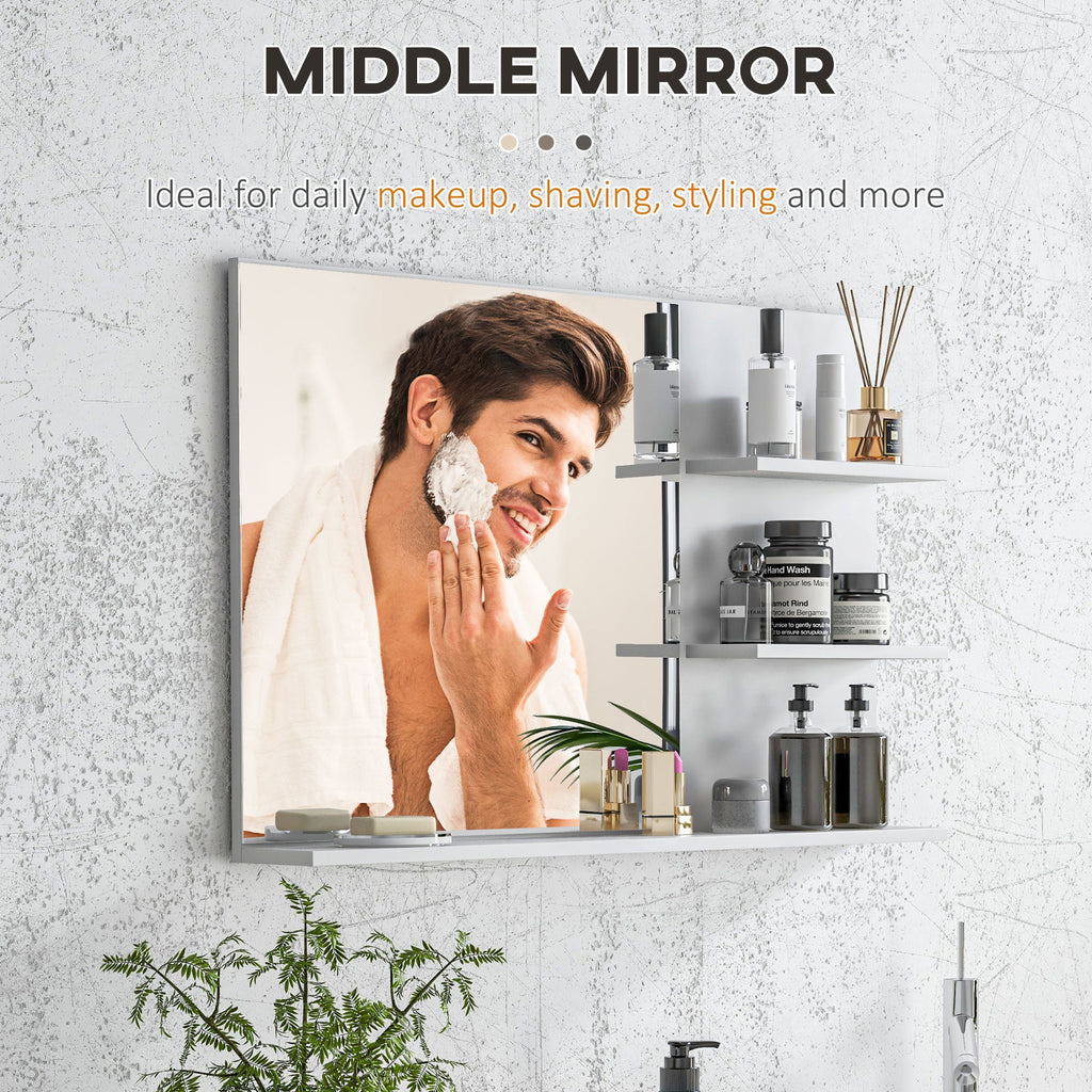 - DESIGN 2 IN 1: Questo specchio per il bagno è comodo per il trucco quotidiano o la rasatura. Inoltre, sono presenti 2 ripiani laterali e un ampio ripiano inferiore per riporre gli asciugamani e i prodotti da bagno essenziali come sapone, shampoo, dentifricio, ecc.