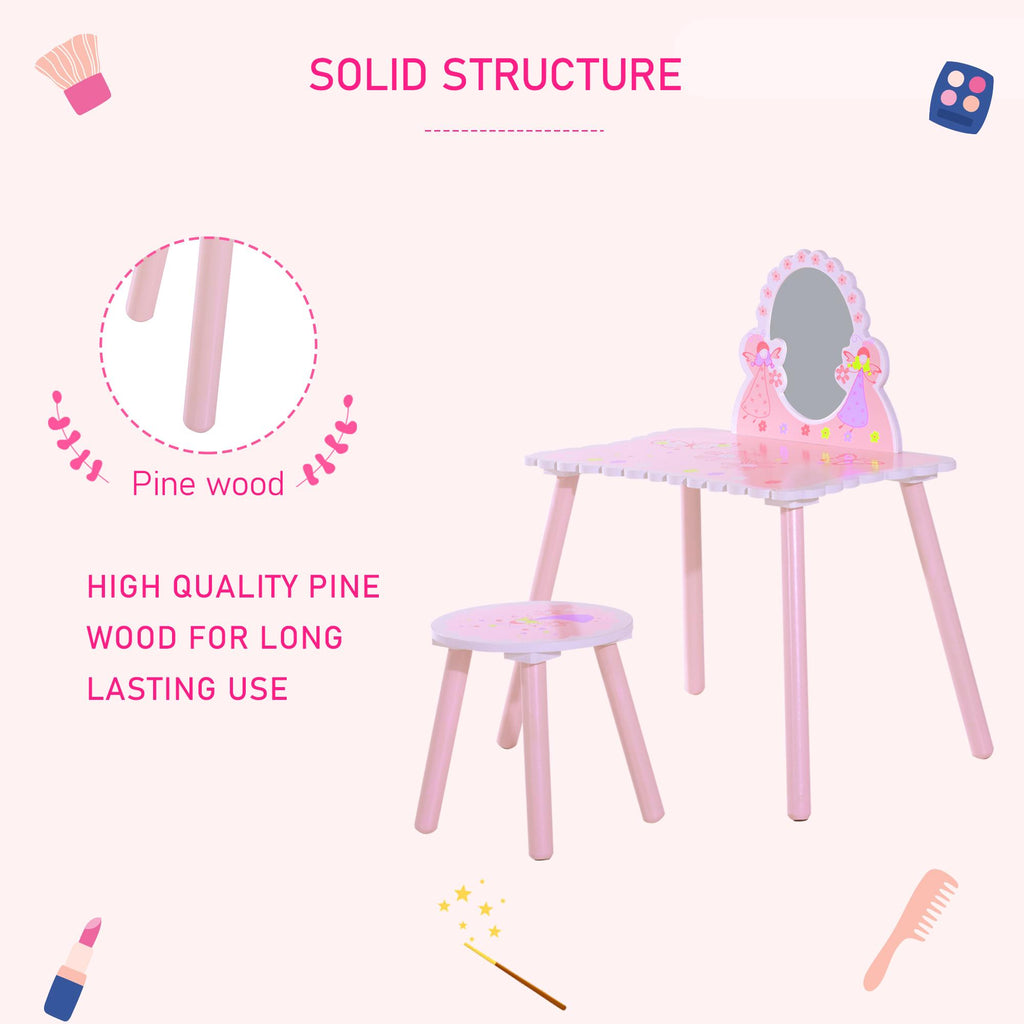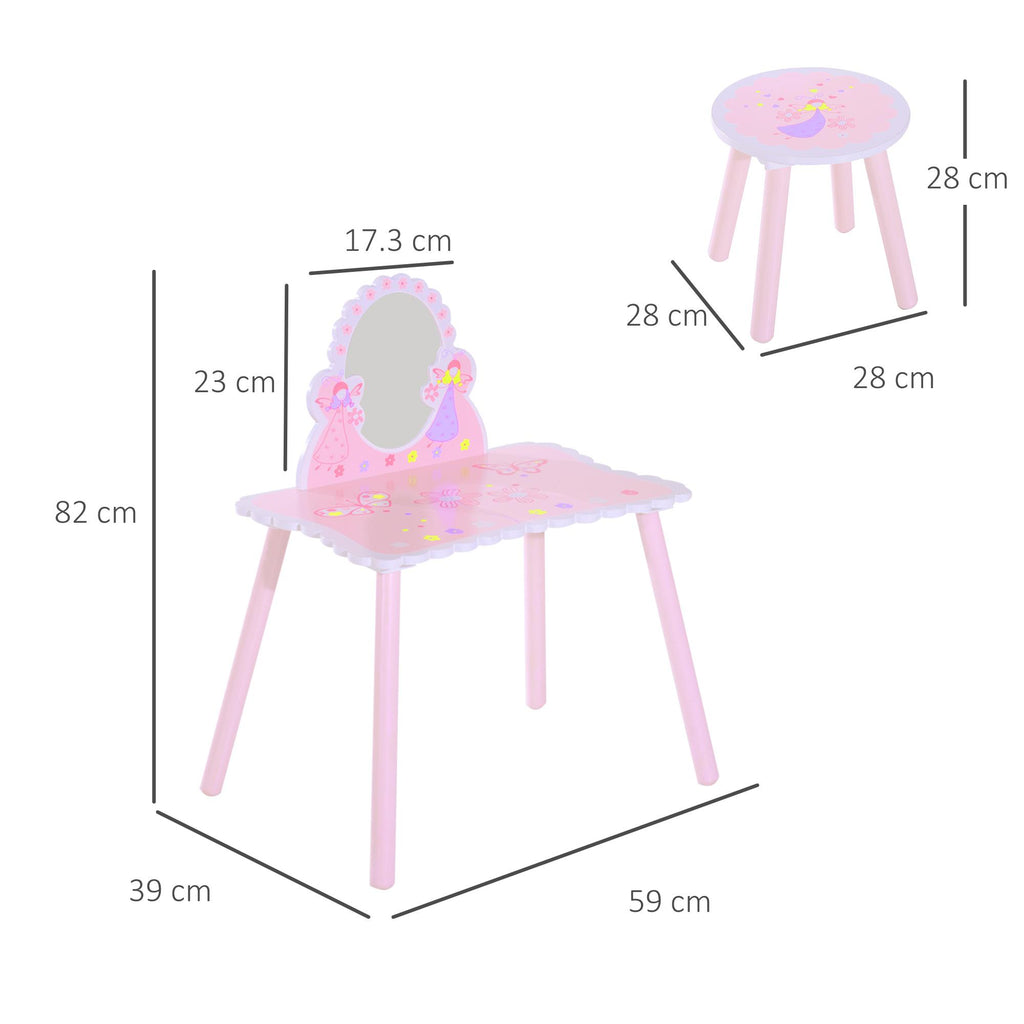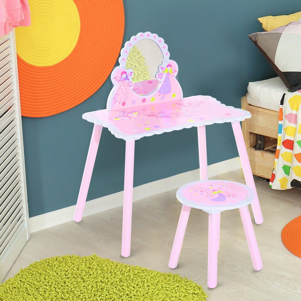 Schönheitssalon für Mädchen, bestehend aus einem kleinen Tisch mit Spiegel und einem Hocker. Machen Sie Ihrem kleinen Mädchen eine Freude mit diesem schönen Schminktisch, mit dem es in den Spiegel schauen, sich frisieren und wie eine echte Prinzessin spielen kann.