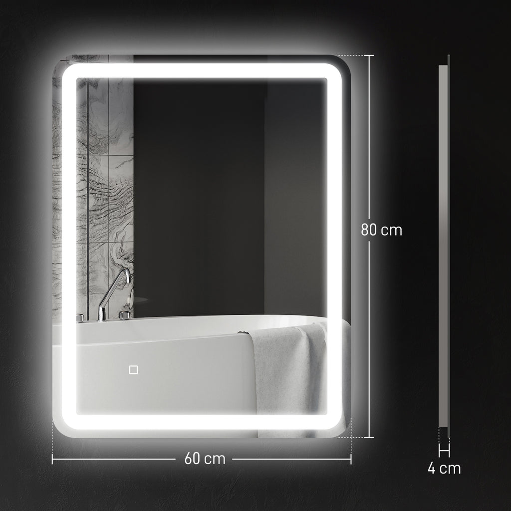 Specchio Bagno 60x80 cm LED Touch con Luce Dimmerabile a 3 Temperature e Antiappannamento