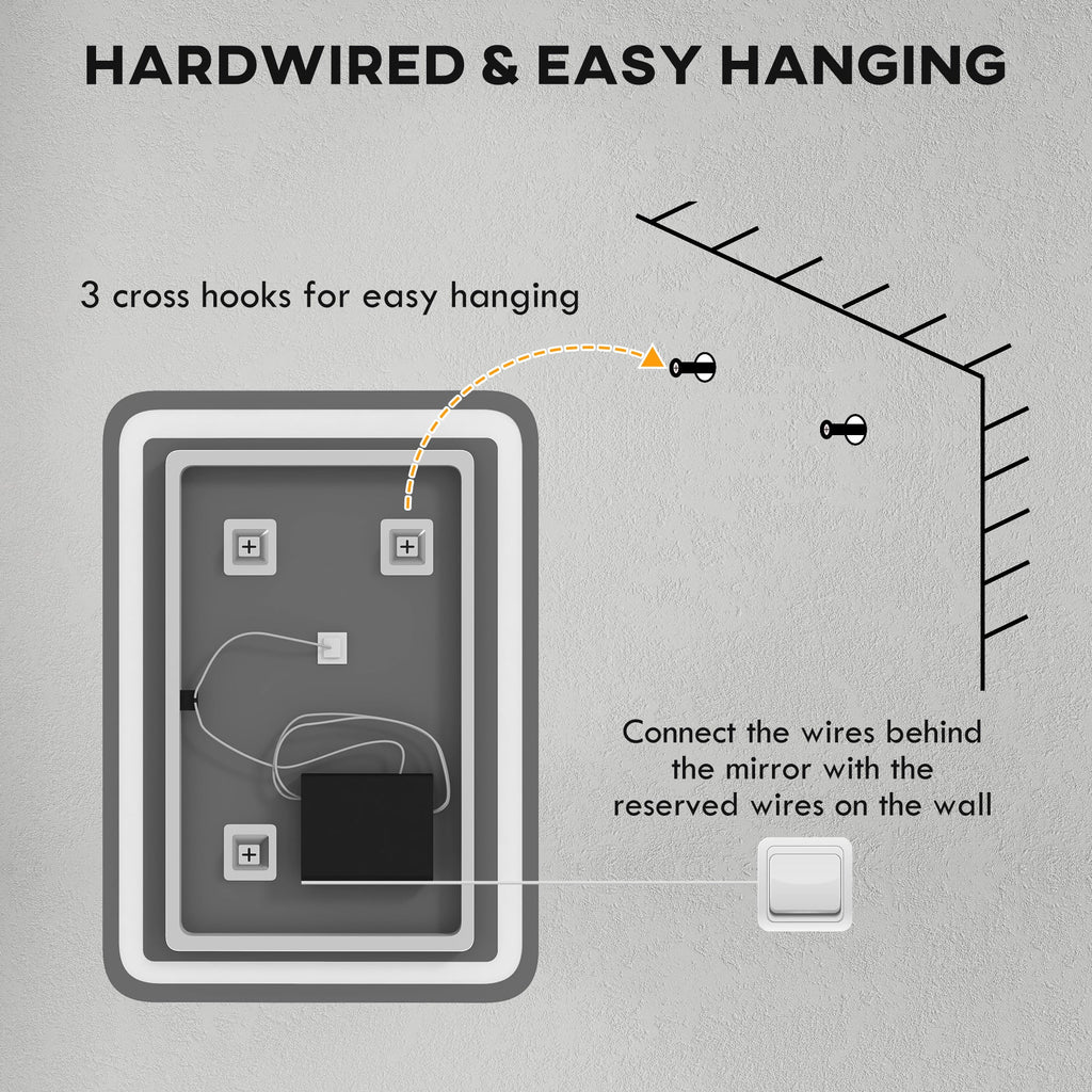 • LUCE REGOLABILE: La luce LED di questo specchio bagno si regola su 3 livelli di luminosità, tra cui bianco caldo, bianco naturale e bianco freddo. Ti basta premere a lungo o a breve l'interruttore a seconda delle impostazioni che vuoi selezionare