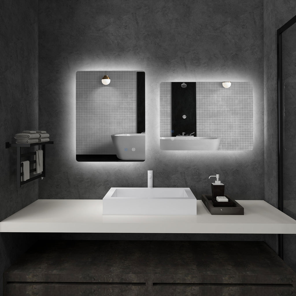 • LUMINOSITÀ REGOLABILE: Vivi un'esperienza di illuminazione ideale con il nostro specchio LED per il bagno. Regola liberamente la luminosità e scegli tra luce calda (3000K), naturale (4500K) e bianca (6500K), tutto attraverso un comodo pulsante