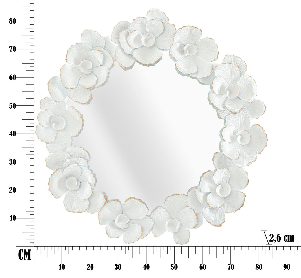 Weißer Blumenspiegel 82x2,6x85,5 cm aus Eisenspiegel und MDF in Weiß und Gold