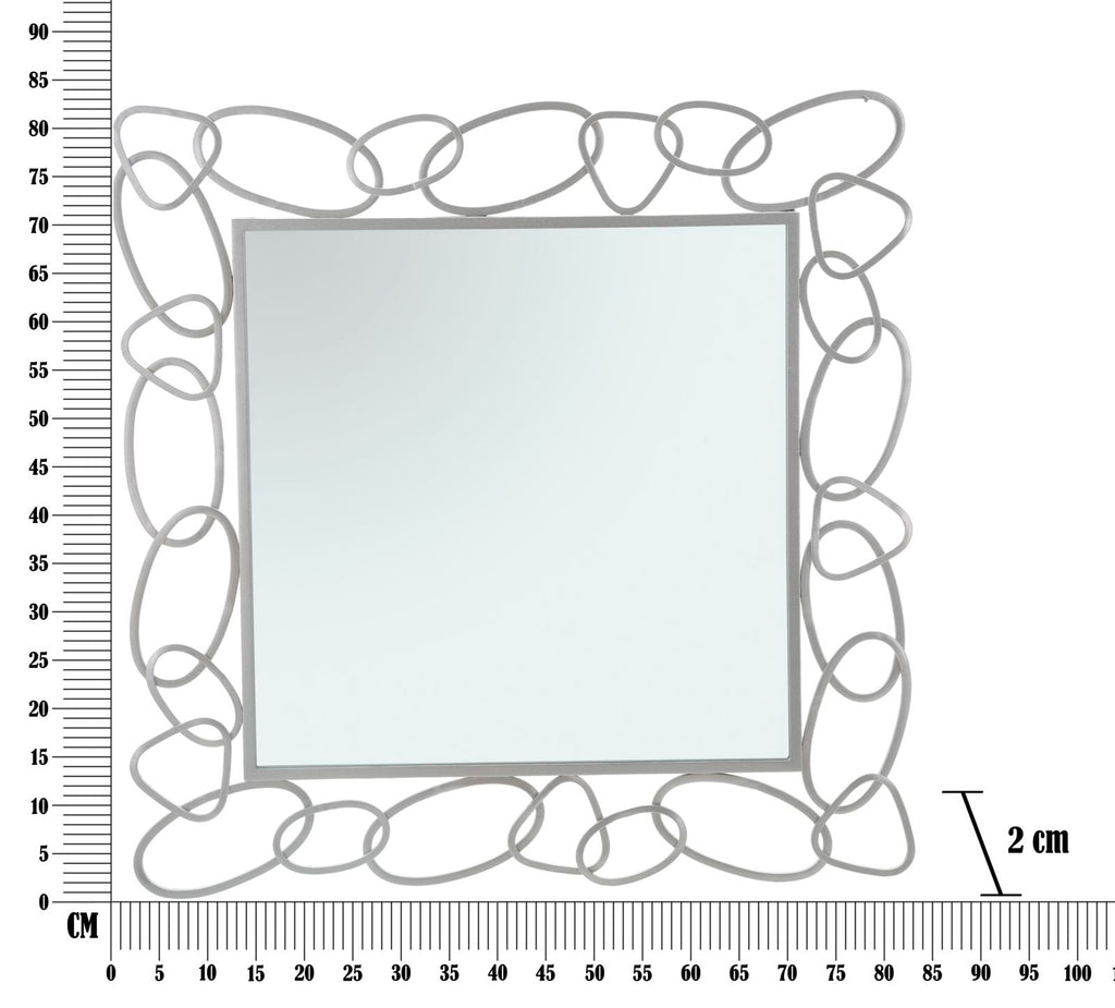Silberner Kettenspiegel 84x2x84 cm aus Eisen und silbernem MDF