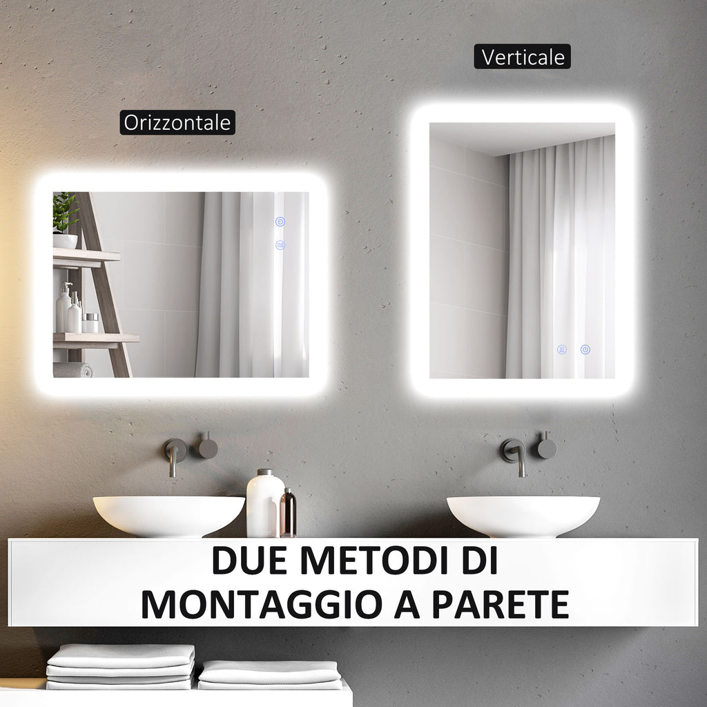 Specchio da Bagno 80x60x3 cm con LED 3 Colori Regolabili in Metallo e Vetro
