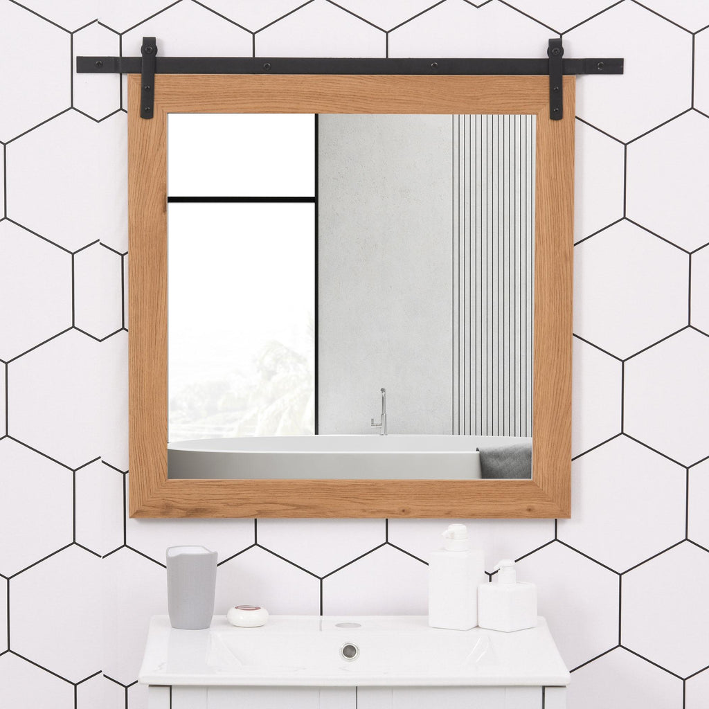 - ABMESSUNGEN: Gesamtabmessungen: 84 L x 2 T x 74 H cm, Spiegelabmessungen (einschließlich Rahmen): 68,5 L x 68,5 Pcm.