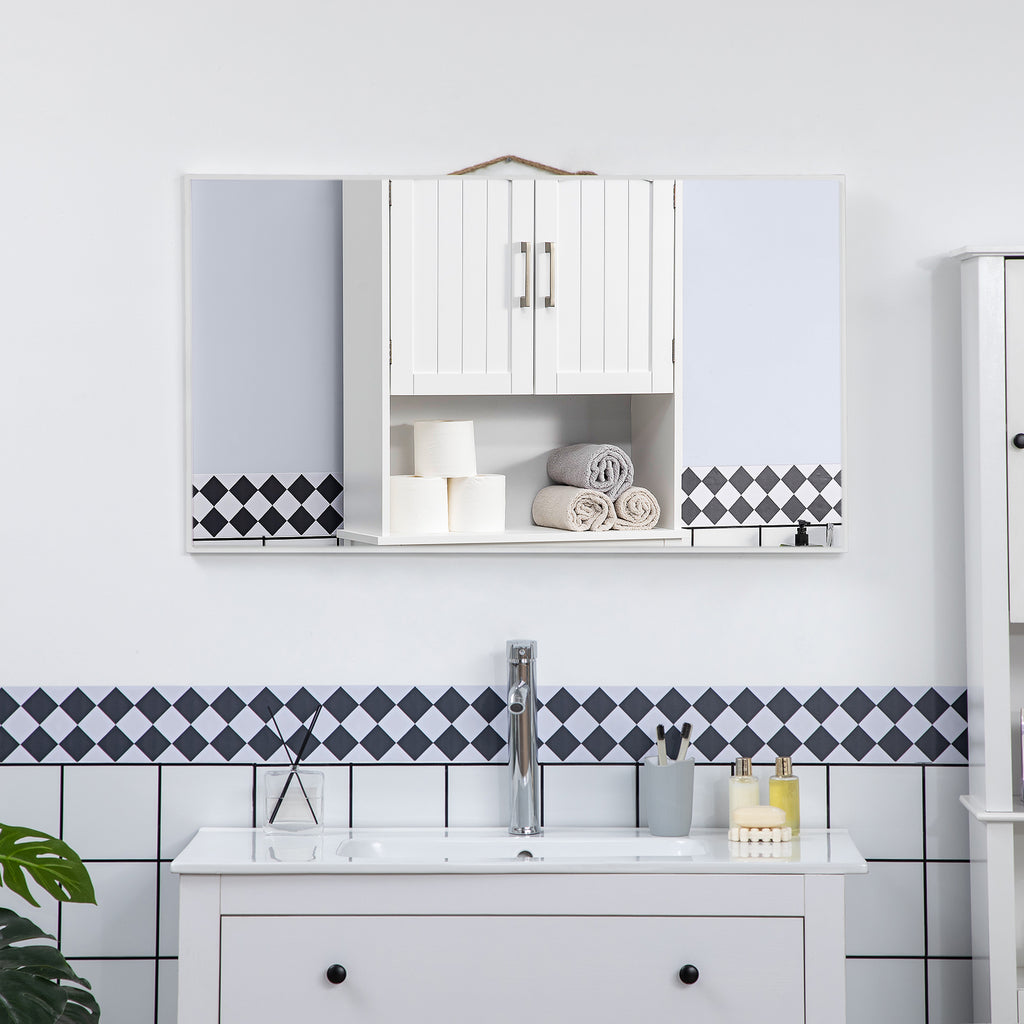 Badezimmerspiegel mit 104x60 cm Rahmen aus Spanplatte und weißem und silbernem Glas