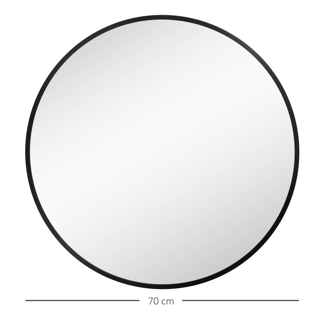 Specchio da Bagno Rotondo Moderno da Parete 70x70 cm con Cornice in Lega di Alluminio Nero