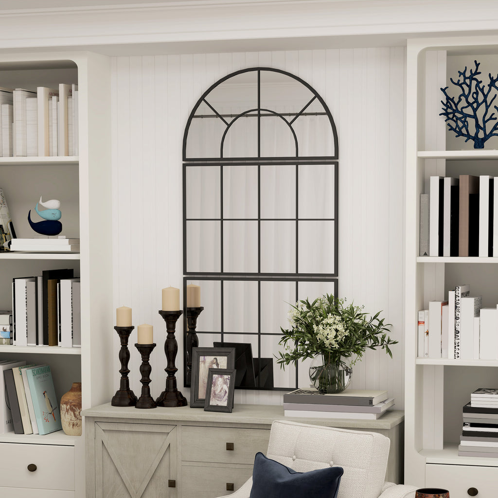 Specchio da Parete ad Arco Stile Finestra Telaio in Metallo Nero