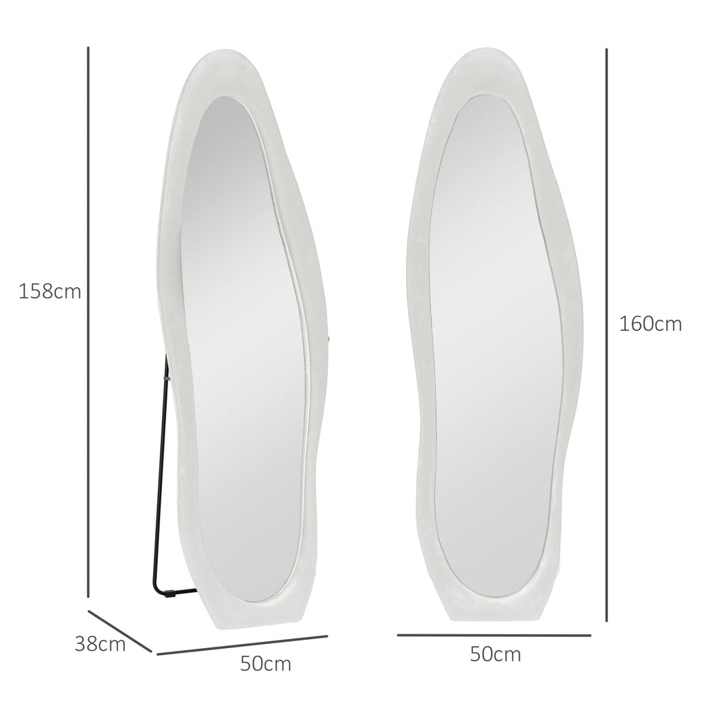 Specchio da Parete o da Terra Autoportante a Figura Intera con Cornice Ondulata in Velluto 160x50 cm Bianco