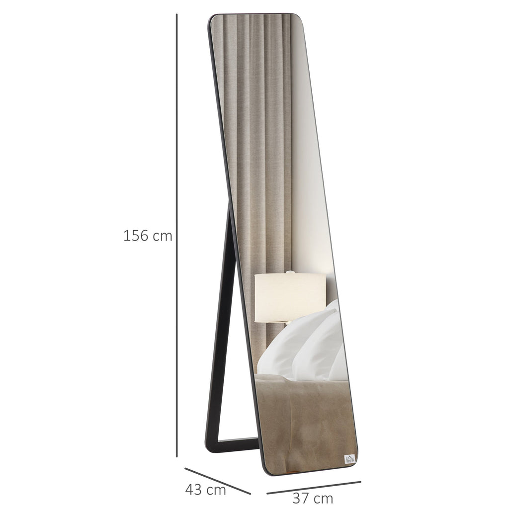 Specchio da Terra e da Parete 37x43x156 cm con Struttura in Legno e Supporto Pieghevole Nero