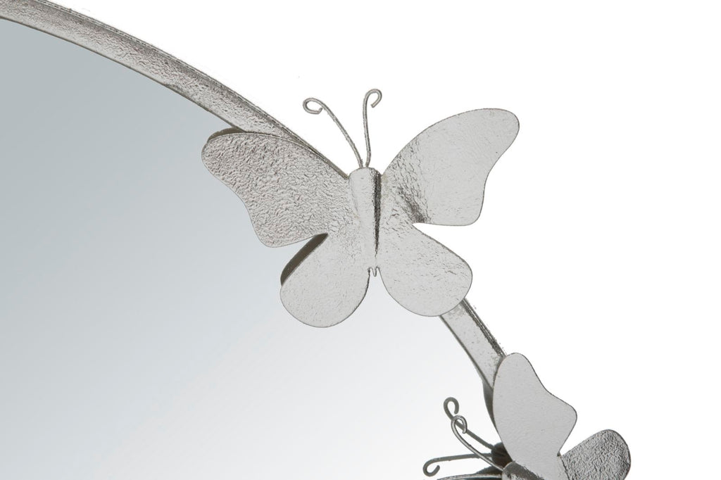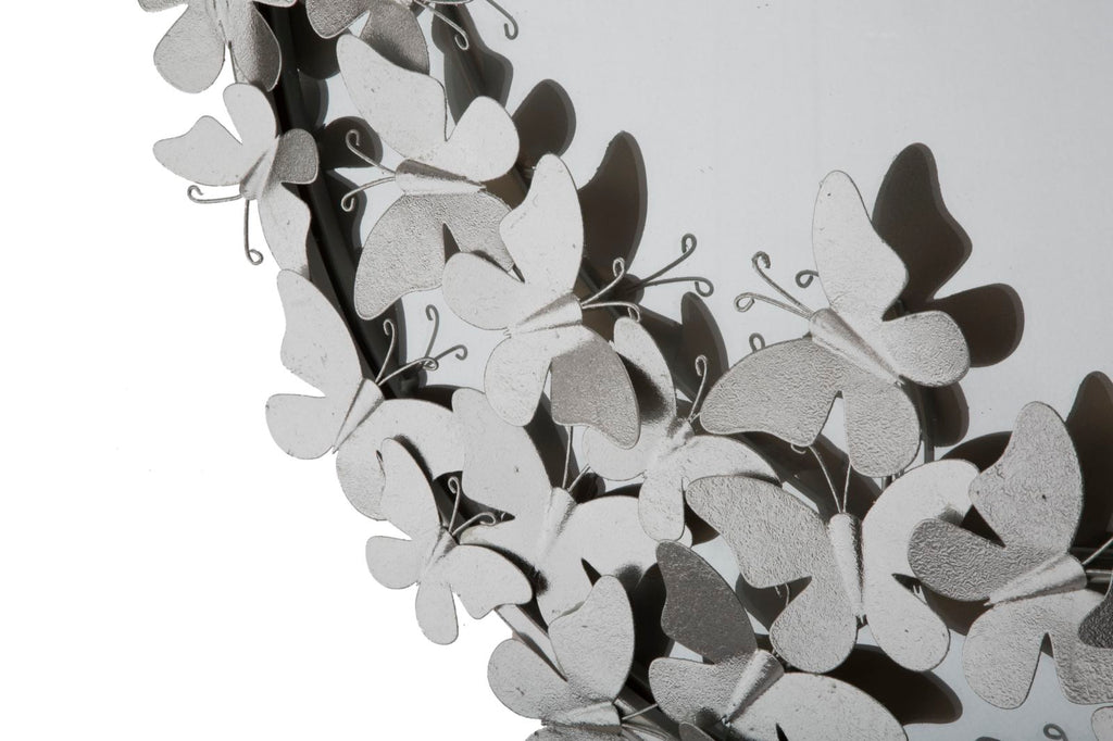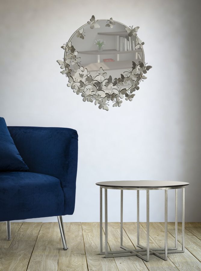 Runder silberner Schmetterlingsspiegel Ø74x4x75 cm aus silbernem Eisen
