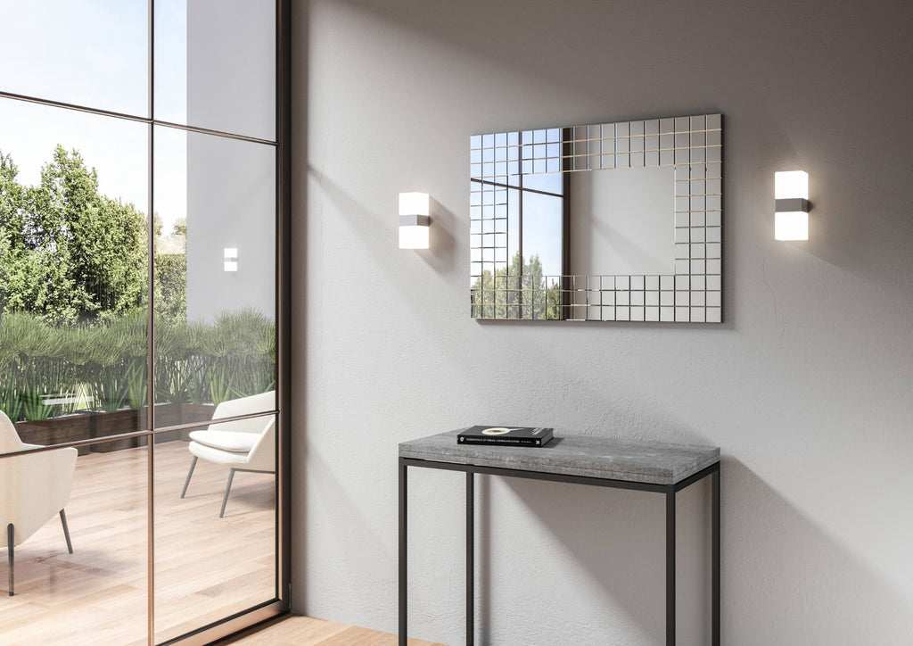 Hokkaido, uno specchio da parete dallo stile originale e dal design moderno. Composto da uno specchio centrale 60x35 cm e da altri specchietti dimensione 5x5 cm, che ricreano una trama geometrica adatta a qualunque stile di arredamento. Un elemento d'arredo che arricchirà con luminosità qualunque ambiente. Posizionabile orizzontalmente o verticalmente a seconda delle proprie preferenze.