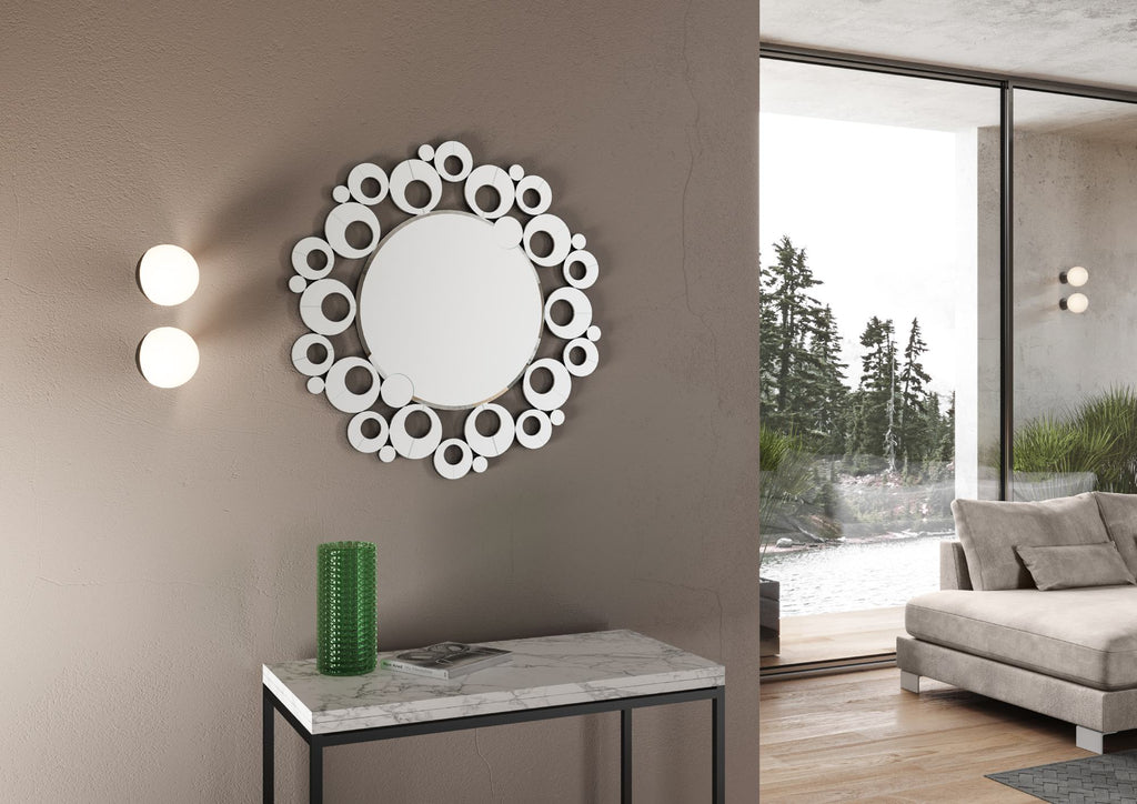 - Dimensione: Ø80x1,7 cm - specchio centrale Ø47 cm - specchi: Ø4 cm/ Ø8 cm / Ø9.5 cm / Ø13 cm